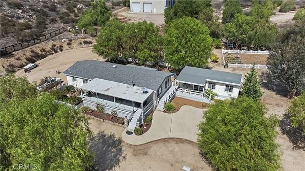 The home includes five spacious bedrooms, five baths, & an office. The luxurious primary suite features a cozy fireplace, wood-paneled ceiling, dual walk-in closets, & a spa-inspired bath with jacuzzi tub & large shower. Additional highlights include surround sound, plantation shutters, dual A/C units, & expansive covered patios for outdoor entertaining. A separate manufactured home offers 2 bedrooms, 2 baths, an office, covered patios, & enclosed yard—ideal for guests, staff, or rental income. Foreman's quarters with 2/1 bath. Equestrian facilities are top-tier with a Blue Ribbon barn offering 16 stalls (8 with runs), automatic waterers, fly spray system, tack room, office, & two wash racks. Riders will love the lighted arena (approx. 130x250)), 60’ round pen, hot walker, & six large outdoor pens with shelters. Sustainably equipped with owned solar (68 panels, 55 kWh storage), high-producing well with five holding tanks, & 2 RV pads with hookups with 50-amp service & waste dump. Fully fenced & gated, the ranch offers peace, privacy, & stunning views of the surrounding hills.