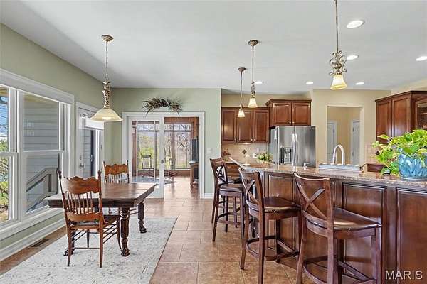 As you pull up the sweeping circular driveway to the side-entry 2-car garage, you’ll immediately notice the pride of ownership. Inside, gleaming hardwood floors guide you through an open layout featuring a vaulted cathedral ceiling in the great room. The open floor plan flows seamlessly into the kitchen with custom cabinetry, granite countertops, breakfast bar, and full suite of stainless steel appliances. Enjoy the formal dining room for holiday hosting and the breakfast nook overlooking a lake for casual mornings. Warm woodwork encircles the sunroom, anchored by a free-standing wood burning stove.