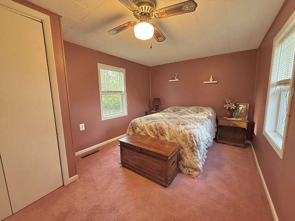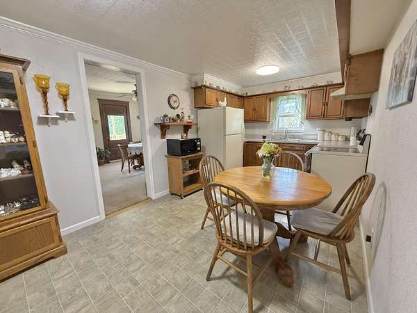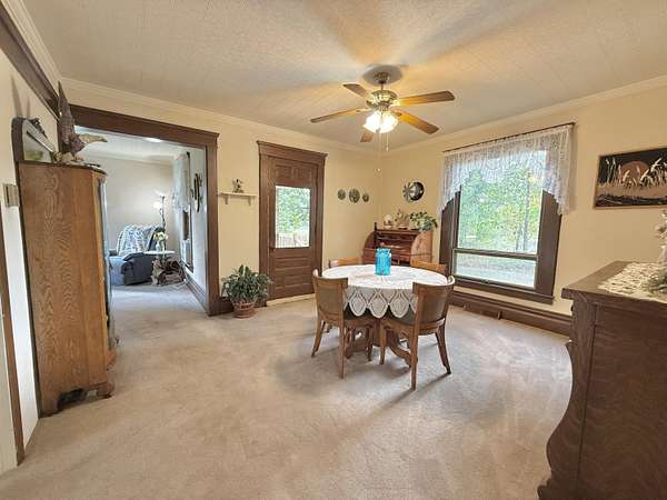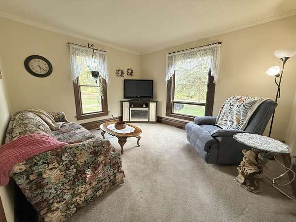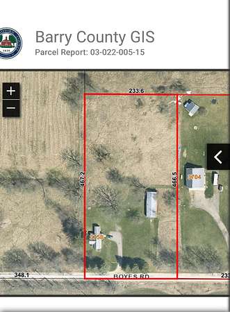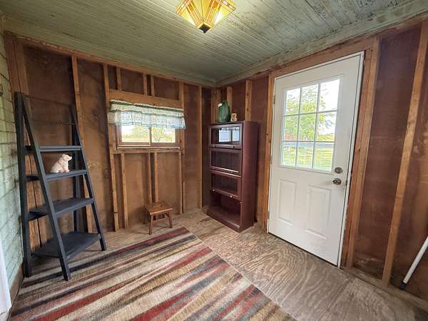 Farmhouse charm on 2.5 acres! Welcome to country living with this cozy 3-bedroom, 1-bath farmhouse on 2.5 acres in Delton schools. Tall ceilings, large sun-filled windows, and original woodwork highlight the home's timeless character, while the spacious mudroom adds practicality. Outside, you'll find mature walnut and mulberry trees, a deck to enjoy wildlife and beautiful views, and a large pole barn ready for storage and projects. Tucked away on a quiet country road, this property combines rustic charm and outdoor serenity for those seeking peace and opportunity. Listing Agent is representing a family member. Seller reserves the small wooden shelf above the microwave.