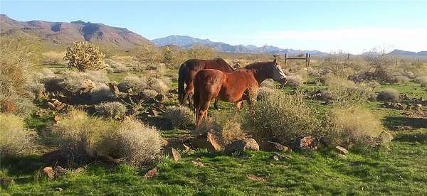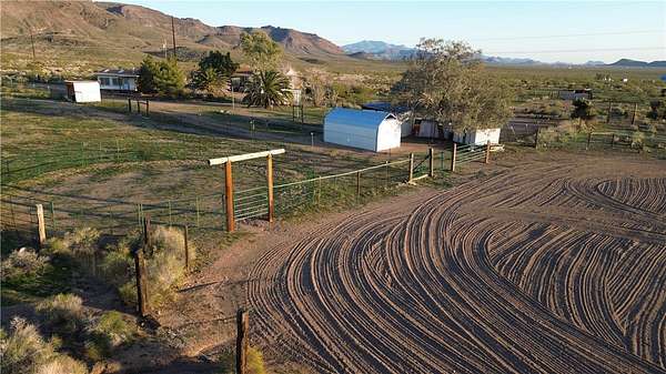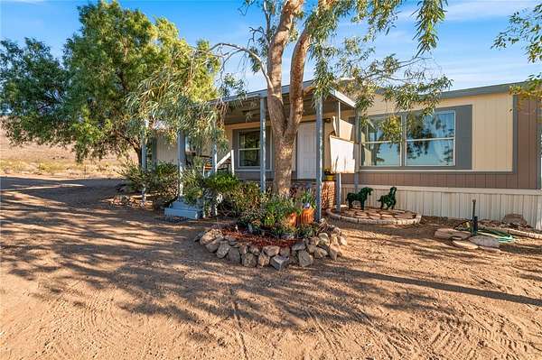 This property offers a unique blend of rural tranquility and convenient access to town. Located just 15 minutes from Kingman, this 6.35-acre estate provides the ultimate secluded rural lifestyle while being within easy reach of amenities.The property is a natural haven, boasting abundant wildlife, vast high desert views, and direct BLM access from the front gate, which opens up miles of off-road riding opportunities. It is exceptionally horse and animal friendly, featuring perimeter fencing, cross-fencing, corrals, shade structures, a round pen, and an arena. This site has a proven track record as a successful horse training and boarding facility, having hosted clinics and riding lessons. Complementing these features are outbuildings including a 12x12 tool shed, a hay barn, and additional metal sheds. The home is a clean and bright 1,450 sq. ft. manufactured home with three bedrooms and two bathrooms. The interior offers a pleasant living room with bay windows and spacious bedrooms. It is an all-electric home, equipped with an efficient Trane heating and cooling unit, as well as a large evaporative cooler. The exterior includes a carport, a covered front porch, and a delightful back deck, perfect for enjoying morning coffee or stargazing. The fenced backyard features non-climb wire for smaller pets, a grassy area, and mature shade trees. Ample, unrestricted parking for vehicles, trailers, and equipment is easily accessible via circle driveways. A standout feature of this property is the beautiful 16x24' art studio/cabin, complete with a half-bath, skylights, and a wrap-around porch, offering versatile possibilities. Strategically located, the property is only 25 minutes from the Colorado River and Laughlin, NV. Residents. This home is on rural water service, eliminating the need for water hauling. The natural landscape is further enhanced by mature shade trees and flowers, all set against a backdrop of year-round sunshine, stunning sunsets, and clear, bright night skies. This property has an impressive track record as a highly successful Airbnb rental, consistently achieving 5-star reviews from guests across the U.S. and 16 foreign countries. Please contact your realtor today to schedule an appointment.