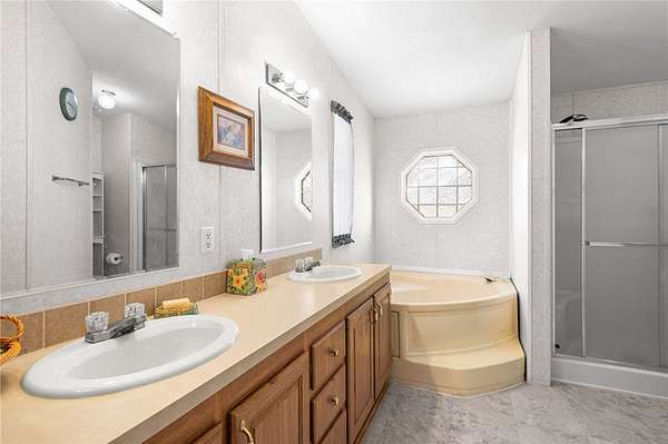 - Bathtub, Breakfast Bar, Ceiling Fans, Dining Area, Garden Tub Roman Tub, Laminate Counters, Laminate Countertop, Primary Suite, Separate Shower, Tub Shower, Utility Room, Vaulted Ceilings, Walk In Closets, Window Treatments