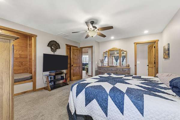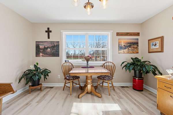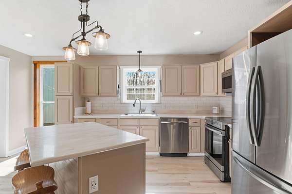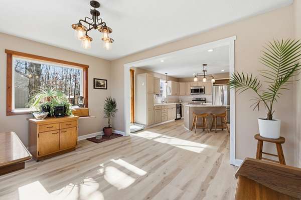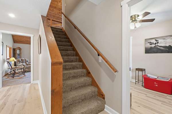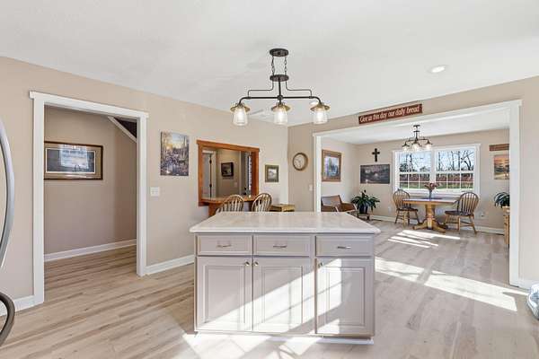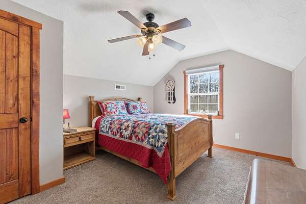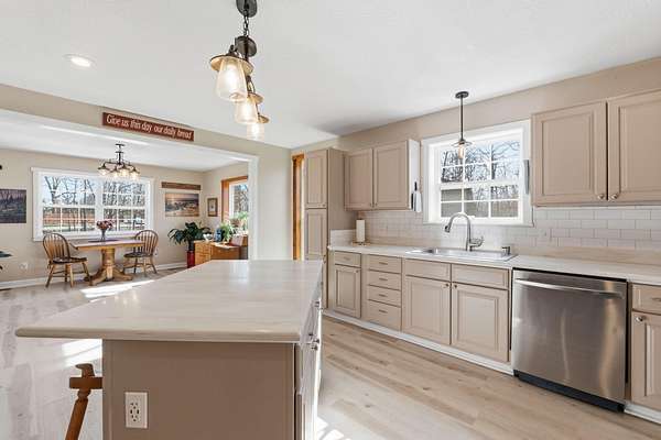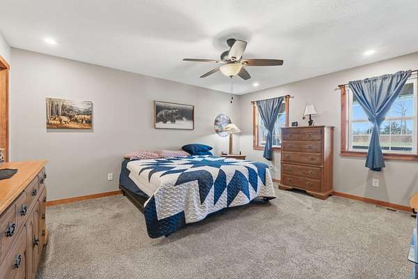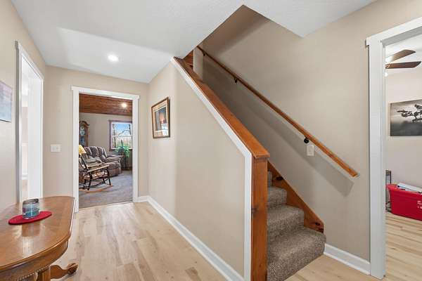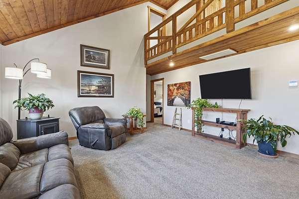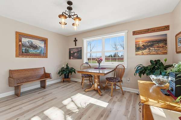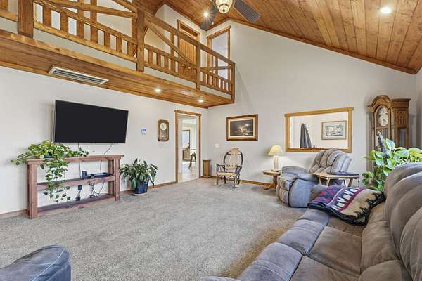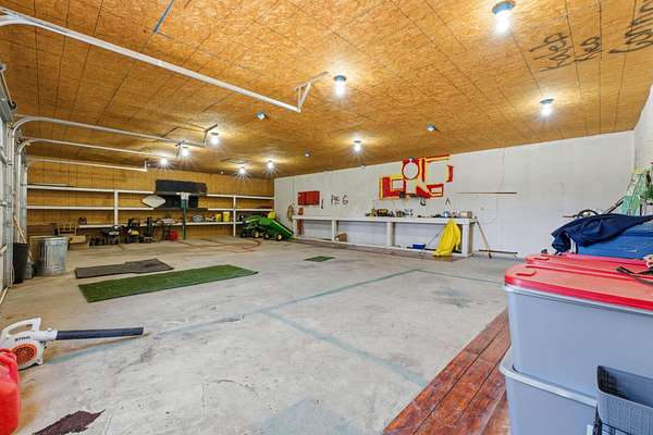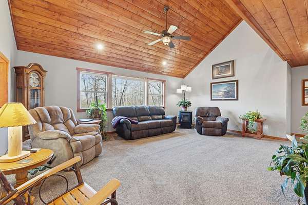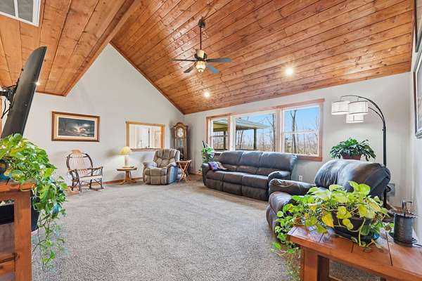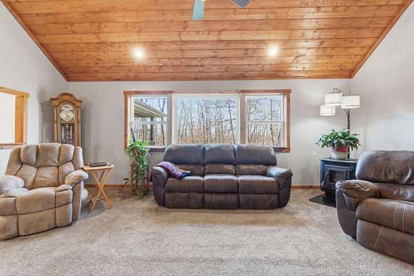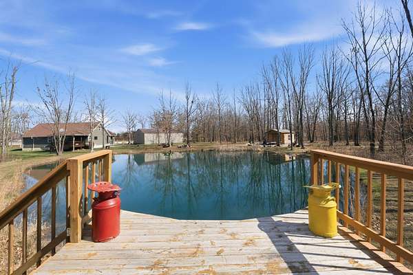 Tucked away at the end of a scenic 2.5 mile country drive, this stunning slice of paradise in Seymour offers the peaceful seclusion acreage buyers dream of. Nestled on 6.6 beautiful acres with a stocked pond, this 4 bedroom, 2.5 bath home is perfectly suited for those craving space, privacy, and a connection to nature. The property features multiple outbuildings including an oversized 30x60 two car detached garage, a shop with heat, water, and concrete floor, and a three stall covered building ideal for equipment, hobbies, or livestock needs. Inside, the home welcomes you with a spacious living room highlighted by vaulted wood ceilings and a balcony above, creating a warm and inviting atmosphere. The kitchen is designed for gathering with stainless appliances, quartz countertops, an island with barstool seating, and an attached dining area. The primary bedroom offers a cozy built-in reading nook along with an en-suite bathroom featuring a walk in shower and dual closets. Three additional bedrooms, a full bathroom, and a powder room provide plenty of space for family or guests. Step outside to enjoy the covered back deck overlooking the stocked pond, surrounded by a park like setting of mature trees and a storage shed. Other features include: NEW furnace, NEW AC, big laundry with pantry area, new toilets plus solid wood doors & trim. Whether you are fishing at sunset, working in the shop, or simply soaking in the quiet countryside, this property delivers the lifestyle you have been searching for.