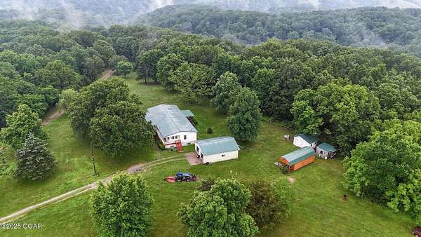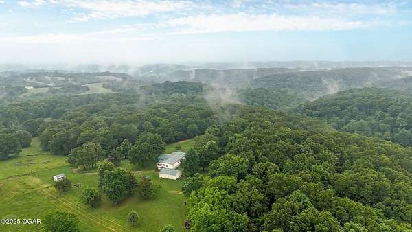 Properties like this don't come available often! Welcome to a truly exceptional opportunity- 240 acres +/- of beautiful rolling hills offering the ideal mixture of nature and practical functionality. Primarily wooded, the mature forests offer great opportunity for hunting enthusiasts or those searching for a peaceful and private retreat. Deer, turkeys, and many other wildlife are often seen across the land. The land itself is a nature lover's dream- perfect for hiking and exploring! There are cleared pastures for livestock, horses, agricultural use, or hayfields! Multiple ponds on the property, as well as a wet weather creek that flows through. Additionally, this stunning property offers a nearly 3,900 sq ft home, with 5 bedrooms, 3.5 baths, full walkout basement, and breathtaking views from the multiple covered outdoor porches. Detached 2 car garage, storage cabin, garden shed, and barn offer ample storage! There are multiple possible building sites for anyone looking to build their dream home as well!Whether you're searching for a private family estate, a hunting lodge, or a working homestead, this one-of-a-kind property offers a rare combination of seclusion, natural beauty, and modern living-all just a short drive to the lake or to metro cities: Branson & Springfield!