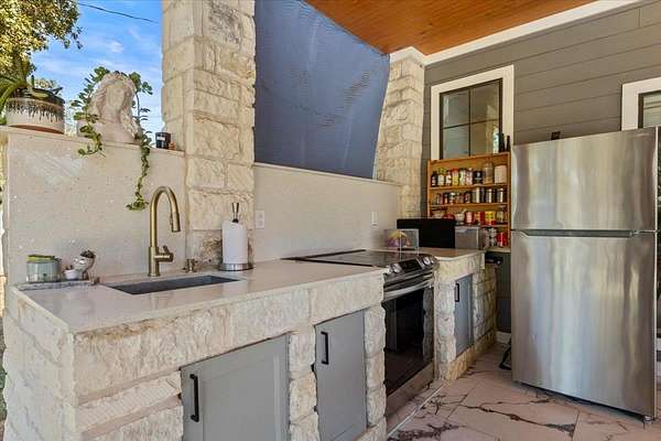 Luxury Country Oasis in Bastrop, TX! Experience the perfect blend of comfort and nature in this stunning single-family home featuring a private casita with its own entrance on the second floor - ideal for guests, rental income, or multigenerational living. The main home offers 3 spacious bedrooms, 2 full baths, a dedicated dining area, and a private office, perfect for working from home or creative space. Enjoy luxury country living surrounded by lush scenery, a tranquil pond, and mature trees that create a true oasis retreat. Entertain with ease on the expansive back porch with a full outdoor kitchen, perfect for gatherings or relaxing evenings under the Texas sky. With ample land and natural beauty all around, this property delivers peace, privacy, and endless possibilities. Set on generous acreage, this property combines luxury, privacy, and nature-an oasis just minutes from the charm of downtown Bastrop.
