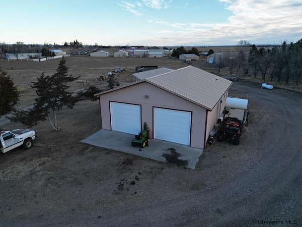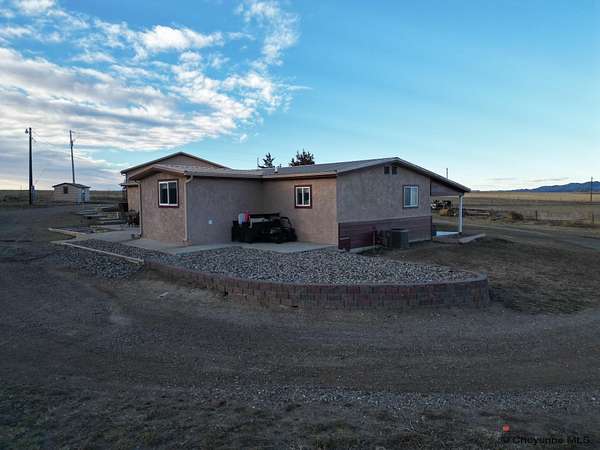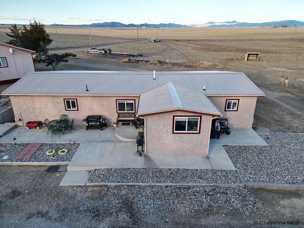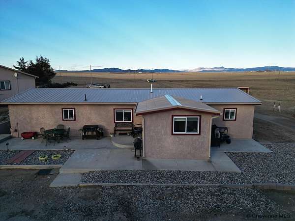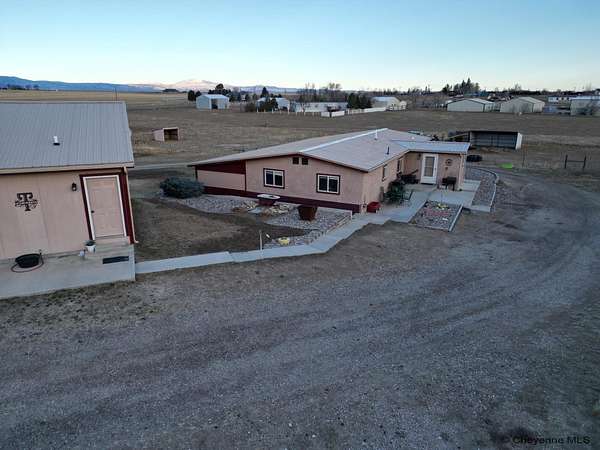 Country Living with Stunning Laramie Peak Views! Experience peaceful rural living just minutes from town on this beautiful 4.5-acre property featuring breathtaking views of the Mountain Range. This spacious property offers 5 bedrooms, 3 bathrooms, and an oversized 2-car garage with additional living space, giving you plenty of room for family, guests, a home office, exercise room or game room. Enter the home of a spacious living room plus separate den. There is a Primary suite with tiled ¾ bathroom and a large closet. Functional 9x12 breakfast bar area off the kitchen plus a separate dining area. There is a large laundry/mudroom with extra storage.. An inviting covered porch, perfect for relaxing and enjoying the mountain views and the amazing sunsets. In the backyard is a Patio area, ideal for BBQs and outdoor entertaining. The 4.5 acres of usable land is cross-fenced for pasture and a Loafing shed for animals. Garden shed for tools and storage. Wide open space with beautiful Wyoming scenery. Enjoy the perfect blend of country lifestyle, space for animals, and convenience to town. Wheatland Irrigation Rights are included. This property has so much to offer. A must see. Schedule your private showing today!