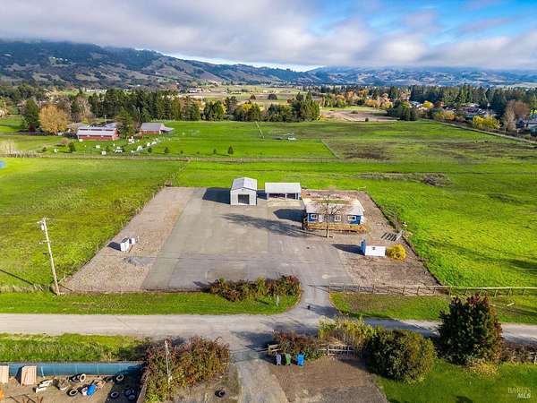 Welcome to 376 Horn Avenue, an exceptional 5.5-acre Sonoma County property offering versatility, privacy, and endless potential. Ideally located in the unincorporated area near both Santa Rosa and Rohnert Park, this unique rural residential/agricultural parcel blends country living with unbeatable convenience. Originally a 3-bedroom, 2-bath manufactured home on a permanent foundation, the structure has been converted into a spacious studio with 1.5 bathrooms. A full kitchen space is in place with hookups ready for appliances, allowing the next owner to customize to their taste. The home operates on well and septic systems and is connected to PG&E. The house is also connected to a water softener system. With a recorded 433A, it is classified as real property and appears on the property tax roll, making it financeable as a single-family residence. Square footage to be verified by buyer. Outdoors, the property truly shines. A massive 24' x 41' workshop with a 10-foot roll-up door provides incredible opportunities for hobbyists, car enthusiasts, or storage needs. Additionally, a detached 3-car garage (with mini-split) and dual RV hookups offer even more functionality and flexibility. The acreage is fully fenced and well-suited for cattle, horses, or other animals, providing a genuine homestead atmosphere. Property has a mature thornless blackberry and pomegranate bush. Enjoy sweeping views to both the east and west, offering beautiful sunrises and sunsets throughout the year. A separate storage shed adds convenience, while the expansive land gives you the freedom to build your dream custom home if desired, all while living onsite. Whether you envision a working farm, a peaceful retreat, or an investment property with multiple use possibilities, this land can accommodate it. Just minutes from shopping, dining, and freeway access, this property offers the rare opportunity to enjoy the serenity of rural life without sacrificing modern conveniences. Don't miss this chance to own a truly special piece of Sonoma County with endless room to create, expand, and enjoy.