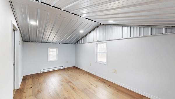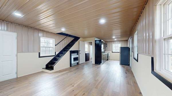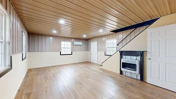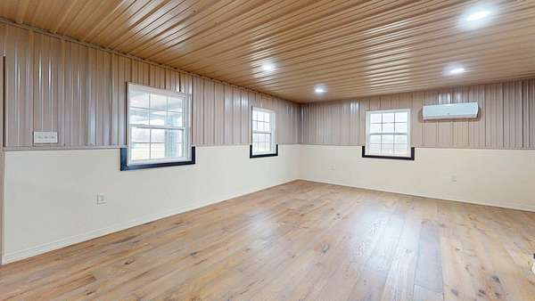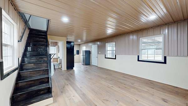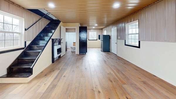 Bracken Creek winds through this beautiful 76 acre hunting and cattle farm featuring a brand-new 2024 barndominium in Bracken County. With approximately 60% woods and 40% open pasture, this property offers excellent deer and turkey habitat along with fenced pasture and cattle waterers already in place for livestock. Known for its year-round water, Bracken Creek adds natural beauty, fishing opportunity, and strong wildlife appeal. Located about 1 mile from the AA Highway, the farm offers convenient access while still feeling private and secluded. The 2 bed, 1 bath barndominium includes mini-split heating and cooling, upstairs baseboard heat, propane heaters, and a concrete slab foundation. A 30x40 covered steel-frame carport on concrete slab provides great space for equipment, vehicles, ATVs, or gatherings. If you've been looking for a place to hunt, fish, run cattle, and enjoy country living, this is it.
