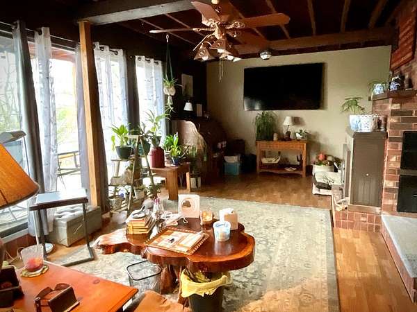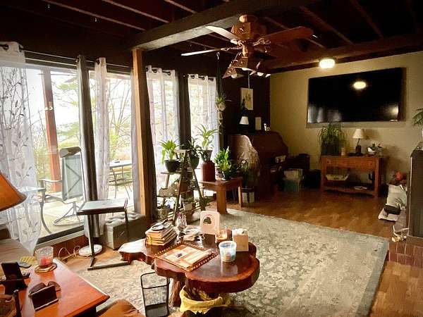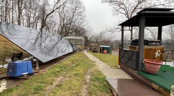 Nestled in the heart of Louisa, this charming retreat on a sprawling 2.66 acre lot offers both tranquility and convenience, situated just minutes from serene Yatesville Lake and downtown. This 3 bedroom, 1.75 bath A frame home with open concept kitchen and dining area is sure to please, enjoy the mountainous views from your bedroom deck and enjoy the beautiful sunsets. Lots of room for outdoor entertaining and gardening, includes chicken coop, storage building, 2 green houses, double detached garage, handicapped accessible home, privacy gate, fenced yard and more! New addition approx. $50,000 in Solar Panels!