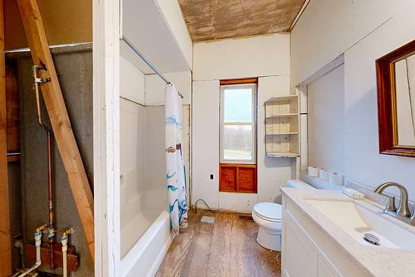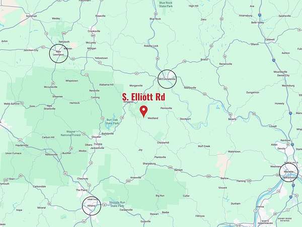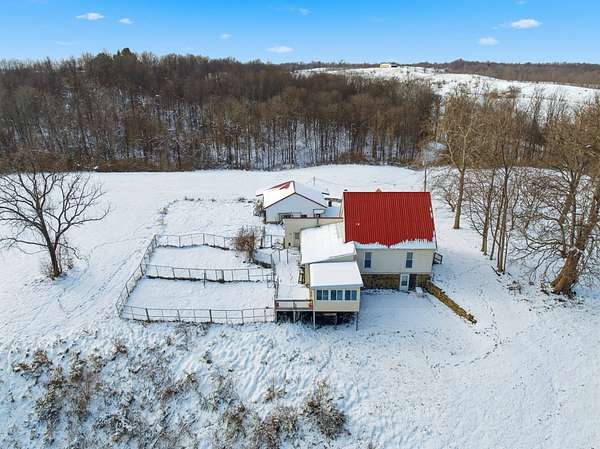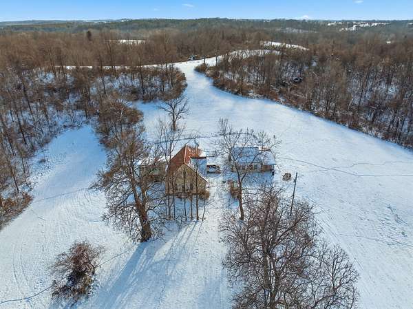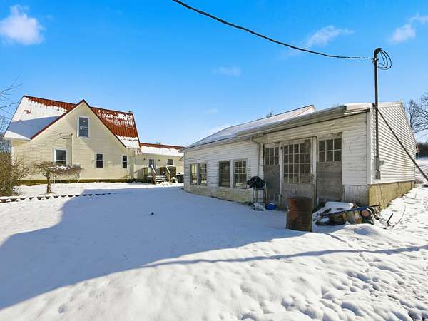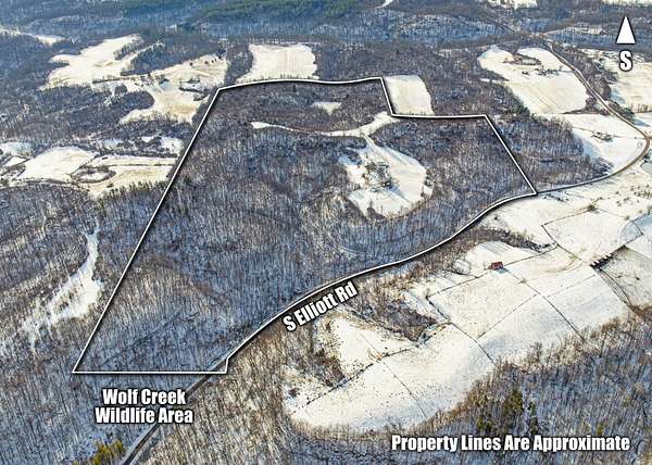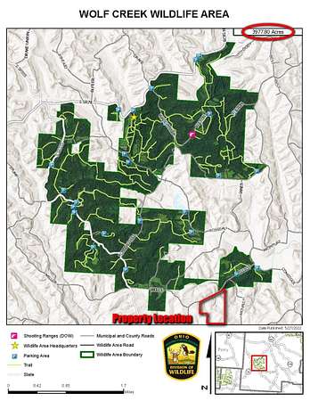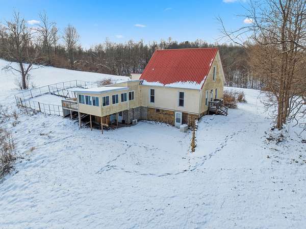 Properties offering this combination of land, minerals, and direct access to public ground are rarely available. The 2,376 sq ft home on the property is privately situated and was constructed in 1888. It will require some TLC, but has strong potential as a full-time residence, weekend retreat, or large hunting cabin. The home features four bedrooms and two full baths, along with a spacious kitchen and dining area. A newer addition provides flexible space that would work well as a home office, additional bedroom, or family room. The home's mechanical systems have been upgraded and include central gas heating and cooling. The large garage has been converted to additional living space and offers lots of storage. The land offers quality woods, a 3/4 acre pond full of fish, and ridgetop meadows well-suited for hay production, pasture, or wildlife food plots. The property directly borders Wolf Creek Wildlife Area, totaling 3,977 acres of public land with hiking trails and a shooting range. Mineral rights are included with the sale. One gas well is located on the property and provides free natural gas to the home. No deed restrictions! A new boundary survey was completed in 2022. Clean title and a title insurance policy will be issued to the buyer at closing. Acceptance of auction terms is required before bidding. 10% buyer's premium.