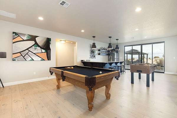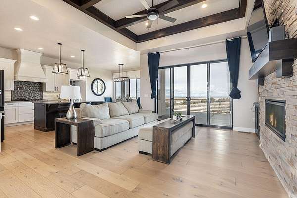 Welcome to acreage living in Cedar City's Northridge. Set on 3.03 acres, this 2018 ranch-style home offers 4,620 sq ft, 6 bedrooms, and 4.5l bathrooms, with a layout designed for space, flexibility, and comfort. The main level is fully finished, and the fully finished basement, creating the perfect setup for extra living areas, a theater or game space, a home gym, offices, or guest quarters. Enjoy year-round comfort with natural gas forced-air heating and central air, plus the added ambiance of one fireplace. The home features a 3-car attached garage, double-pane windows, ceiling fans, and quality finishes including hardwood, tile, and carpet flooring. Outdoor living is dialed in with a covered deck and covered patio, 16X32 pool with two fountains & sun shelf, the yard benefits fro automatic sprinkler systems and partial fencing. This property delivers the rare combination of acreage, square footage and outdoor living.