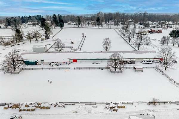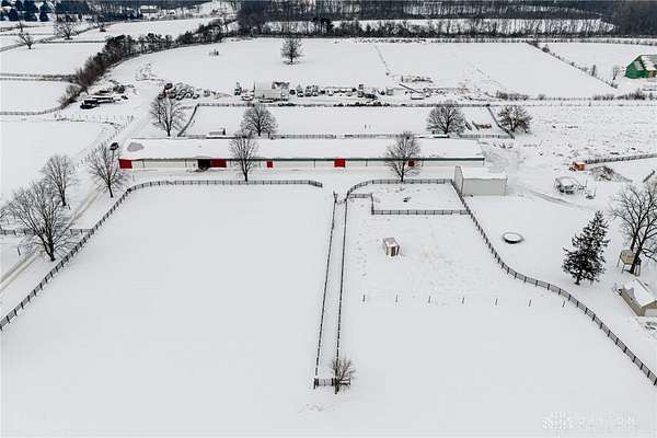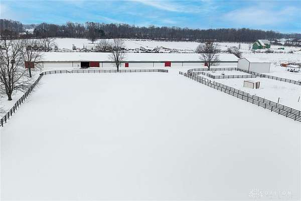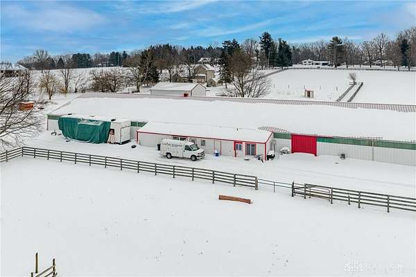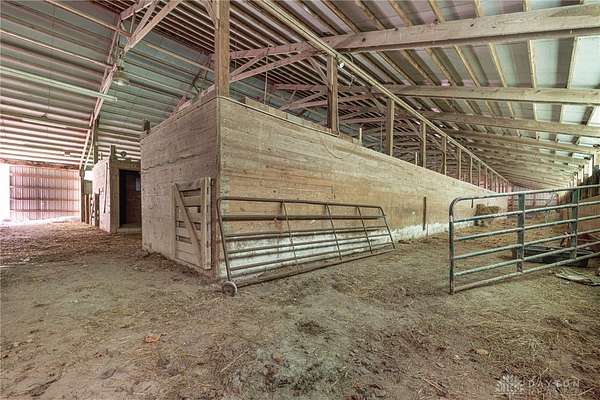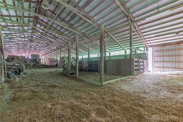 You must see this hard to find property, in a great area of Sugarcreek Twp. The property is close to Bellbrook, Waynesville, Washington Township & Centerville, OH. Purchase includes 21.68 acres & a 66x380 steel barn (25,080 SF). You can enjoy the indoor riding arena with several stalls, tack room, and more. Est. 66x100 of the barn floor is cement & currently rented. Balance of the floor is a dirt floor where current owner stores hay & straw, tractors, & equipment. In the back of the barn is living quarters with 2 bedrooms, 1 bath, and a kitchen that adjoins the living room (22x11). Is on a septic tank system & has city water to the house & barn. Many possibilities for the use of this property. Plenty of room to build a new home or homes.