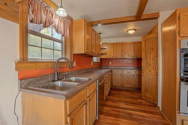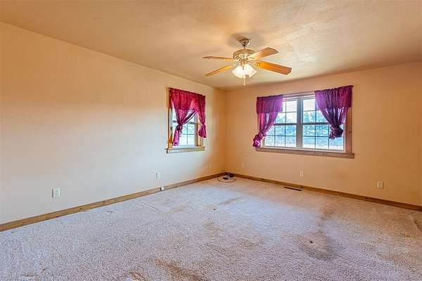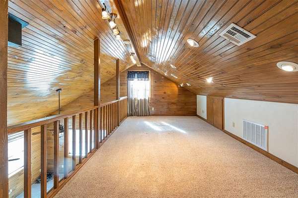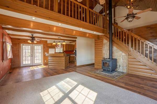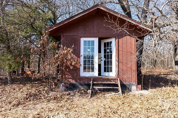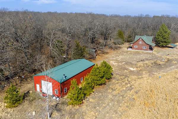 A secluded 65-acre rustic cabin retreat offering privacy, character, and breathtaking views just minutes from town. Nestled among hundreds of towering pine trees and mature hardwoods, this one-of-a-kind home sits on approximately 65 acres m/l and provides exceptional seclusion and space. The three-bedroom, two-bath residence features an upstairs loft with a private primary suite, creating a peaceful retreat surrounded by scenic views. An exterior balcony overlooks the stunning landscape, offering the perfect place to relax and enjoy the serene setting. The home is equipped with two HVAC units and a wood stove with blower for year-round comfort. A winding driveway leads deep into the acreage to the home, a very large 30x60 shop, and an additional storage building with electric. The shop includes a concrete floor, two overhead doors, two walk-through doors, a wood stove, hot water tank, and plumbing, making it ideal for equipment, hobbies, or projects. Open pasture areas are suitable for grazing or hay production, while established trails accommodate ATVs, walking, or horseback riding. The property also includes a hunting stand and abundant wildlife. Meticulously placed pine trees create a retreat-like atmosphere that feels like a vacation every day. Located just minutes from Okemah, approximately half a mile off a paved road, with convenient access to Interstate 40, this property offers the perfect balance of seclusion and accessibility. Ideal as a recreational getaway or full-time residence, this one-owner property was built with exceptional care and pride and is truly one of a kind.