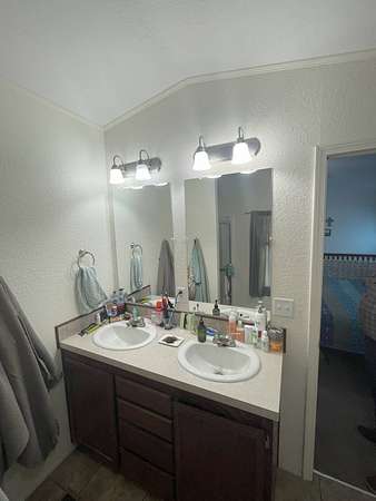 Charming 3-Bedroom Home on 2+ Acres - Fully Fenced with Gate Access! Welcome to your private retreat! This beautifully maintained 3-bedroom, 2-bath home offers 1,360 square feet of comfortable living space, nestled on a picturesque 2+ acre lot surrounded by mature trees. Peaceful and private, the property is currently being surveyed and will total just over 2 acres, fully fenced with a gated entrance for added privacy and security. Step inside to find a thoughtfully designed layout featuring ample cabinet and storage space, a spacious utility room/laundry room combo - perfect for staying organized. The master suite includes a double vanity, providing convenience and comfort. Enjoy outdoor living with plenty of room to roam, garden, or entertain. A shed behind the property adds even more storage options for tools, equipment, or hobbies. The roof on this home is classified as a "Wind Zone 2" which protects up to 100 MPH winds. The home also features drywall throughout, instead of your typical paneling. Whether you're looking for space, privacy, or simply your next home, this property delivers it all. Schedule your showing today and experience the peaceful charm of country living - just minutes from modern conveniences!