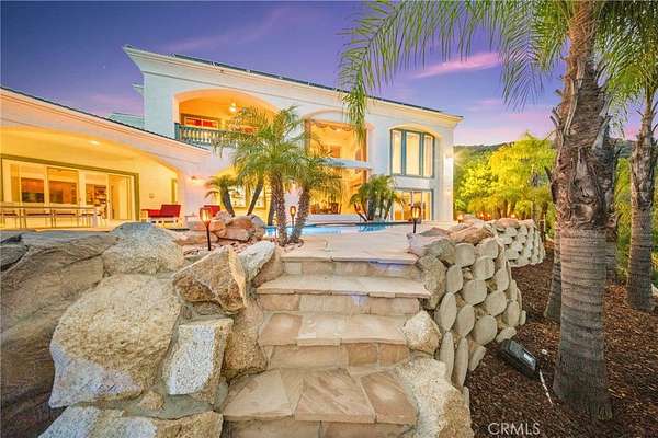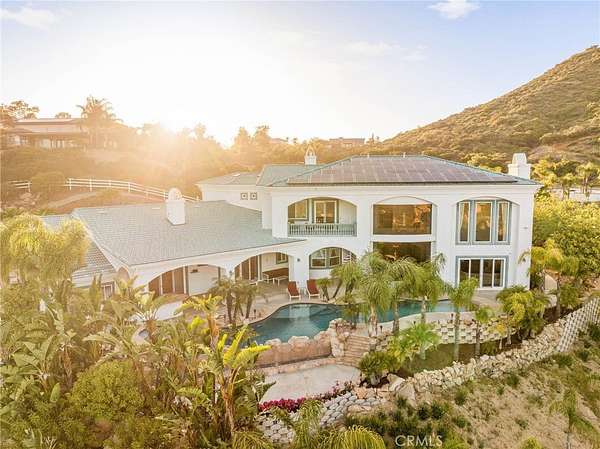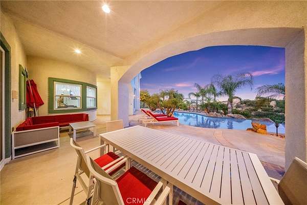 Exquisite Custom Estate with Panoramic Views in Prestigious La Cresta. Discover one of the most extraordinary homes currently available in Murrieta, offering over 6,400 sq ft of refined luxury on more than 5 acres, nestled in the highly coveted La Cresta community. Boasting 4 spacious bedrooms and 4.5 bathrooms, this exceptional property delivers the perfect blend of elegance, comfort, and functionality. Enter through a private, gated driveway to a grand double-door entrance, where you're welcomed by soaring ceilings and a dramatic foyer with rich finishes. The open-concept layout is designed to highlight the sweeping 180-degree views of the Murrieta and Temecula Valleys, visible from nearly every room in the home. Walls of windows and glass doors seamlessly connect the indoor living space to the stunning backyard oasis. Step outside to experience true resort-style living with a sparkling pool and spa, built-in custom BBQ island, and a private guest cabana complete with its own bathroom and shower, ideal for hosting or extended stays. Entertain, relax, and soak in all this property offers. The gourmet chef’s kitchen is a culinary masterpiece, complete with high-end stainless steel appliances, granite countertops, custom cabinetry, a large center island with seating, and walk-in pantry. Entertain with ease in the formal living and dining rooms, breakfast nook, and expansive family room, all showcasing incredible views. A fully-equipped custom bar, complete with sink and mini fridge, anchors the impressive game room featuring a billiards table, shuffleboard, and a temperature-controlled wine cellar. Downstairs includes two private ensuite bedrooms, one is currently utilized as a home office with a separate entrance. Upstairs, two additional ensuite bedrooms with walk-in closets. The luxurious primary suite is a true retreat- enjoy sunrises from your private balcony, unwind in the jetted tub, sauna, or massive walk-in shower, and enjoy the expansive walk-in closet with built-in cabinetry and an adjacent private gym. Additional features include an attached 4-car garage with built-in storage, central vacuum system, water softener, security system with cameras, and a solar power system. Set within one of Murrieta’s most sought-after communities, this property offers tranquility, privacy, and easy access to top-rated schools, shopping, dining, and the renowned Temecula wine country. This one-of-a-kind estate is a rare opportunity-schedule your private tour today!