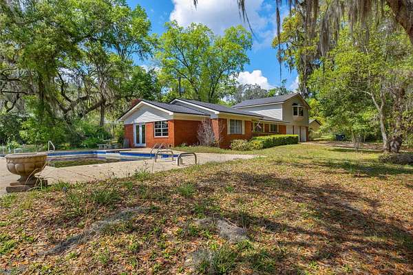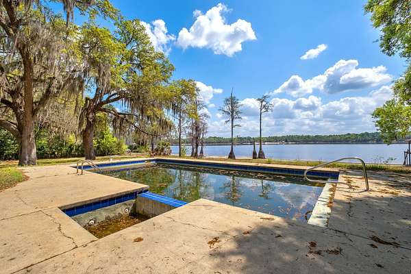 Rare opportunity to own an exceptional property on Lake Bradford featuring three full lots and truly breathtaking waterfront views with a beach-like setting. This 4-bedroom home offers incredible potential and value, with pricing that reflects the opportunity for updates and personal customization. The value of the property alone is probably $350,000 to $400,000. The residence features hardwood floors, a separate dining room, and a spacious sun room anchored by a stone hearth fireplace-perfect for enjoying the serene lake backdrop. Outdoors, a concrete pool provides additional space for relaxation and entertaining. Additional feature is the studio apartment above the garage ideal for guests, rental income, or a home office. The property also includes a private on site boat ramp, offering convenient access to the lake for boating and water activities. With its unmatched views, expansive lot size, and versatile layout, this property presents a unique chance to create a truly special waterfront retreat.