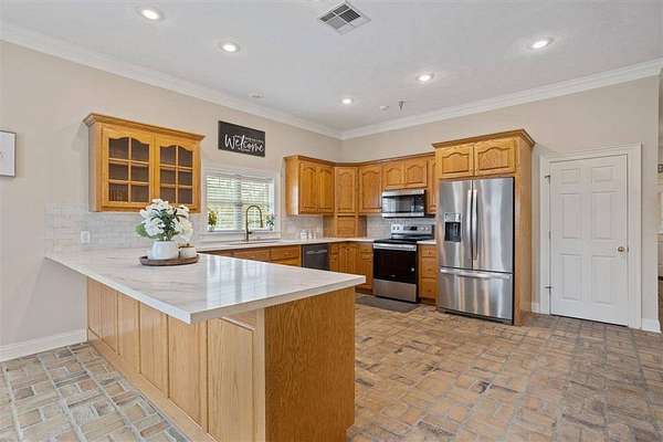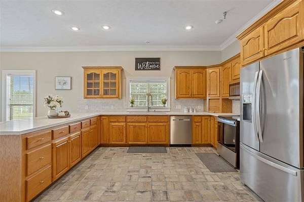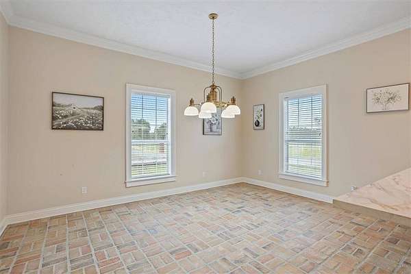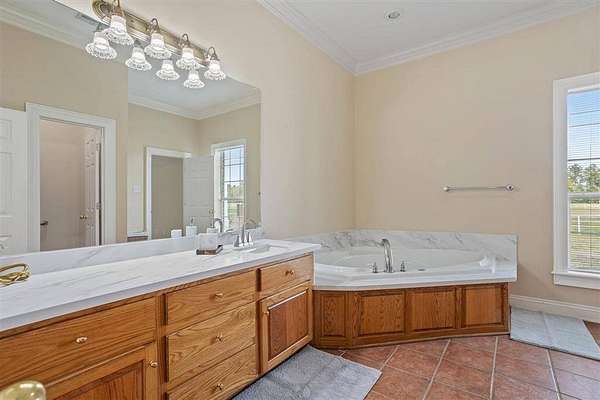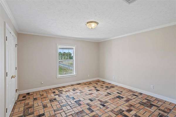 Welcome to "The Ranch" in North Sulphur! This stunning one-owner home sits on approximately 33.5 acres in a prime location with Hwy 27 Frontage. Some of the features include a grand foyer, a spacious kitchen with new quartz countertops, a huge pantry with ample storage, formal dining, a separate breakfast area, and more. Step into the beautiful living room to find soaring custom wood ceilings, a wood-burning fireplace, and brick flooring. The main level offers two bedrooms, each with its own bathroom and custom closet, giving you the choice of your primary suite while offering guests their own private retreat. A custom-built wood staircase leads upstairs to two more large bedrooms, a bathroom, a flex room, and abundant storage. Outside, a remodeled apartment above the two-car garage is perfect for guests or a live-in farmhand. A dog run containing 4 kennels sits just behind the garage. A perfect place to keep your working dogs safe or convert to a goat pen. The property features acres of fenced and cross-fenced pastures, a slab with power and sewer ready for a new barn office, and several horse washing or doctoring stalls. On the south side, you'll find a 36x72 12-stall barn and a 91x80 24-stall barn, both with interior and exterior access--ideal for launching your own horse boarding and training facility. Both barns have water and electricity in place! For fishing enthusiasts, there's a large, stocked pond in the southwest corner, plus additional pastures and a smaller stocked pond on the north side of property. A 30x40 shop adds even more utility storage. Roads are in place to access most of the property from the main driveway. This property is brimming with potential of all kinds! Schedule a visit and make your dream horse property a reality! All measurements are approximate. Home is in Flood Zone X. Agents see private notes