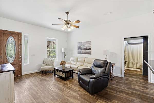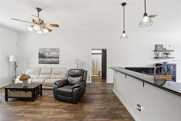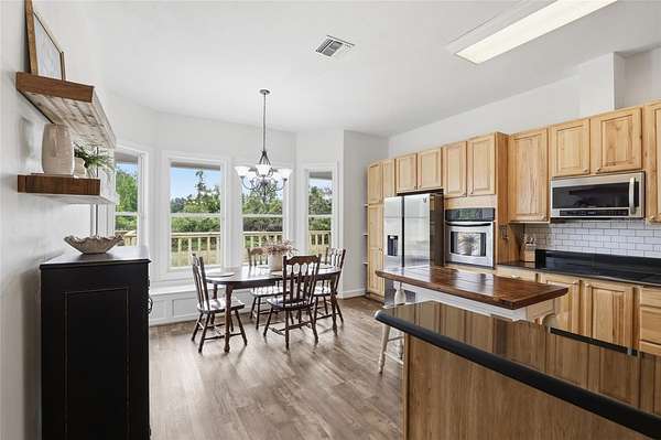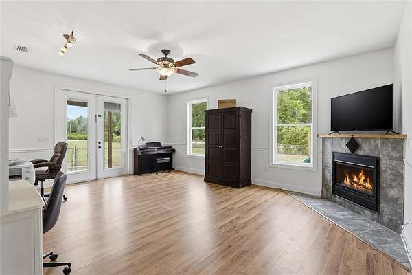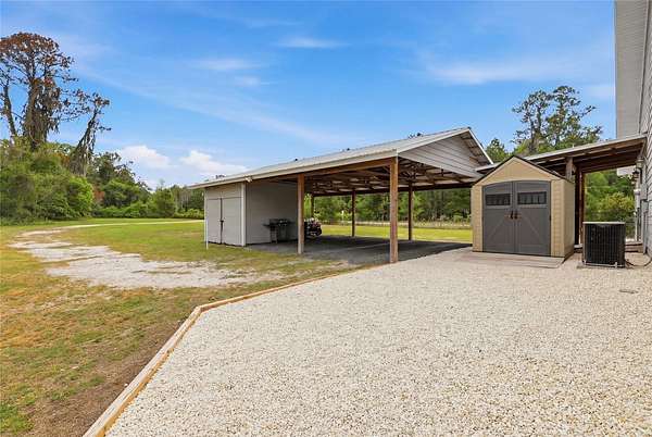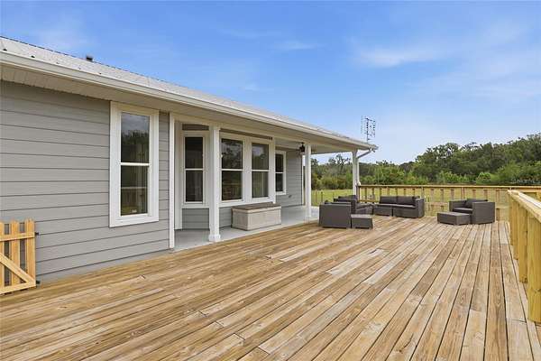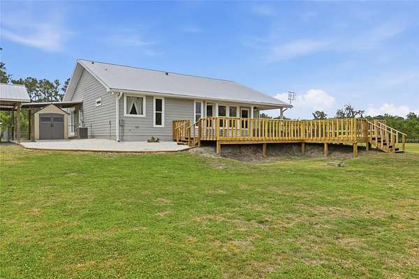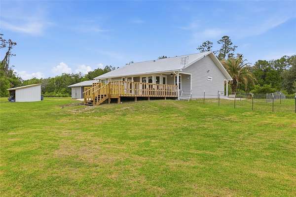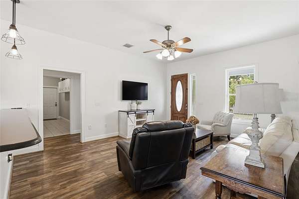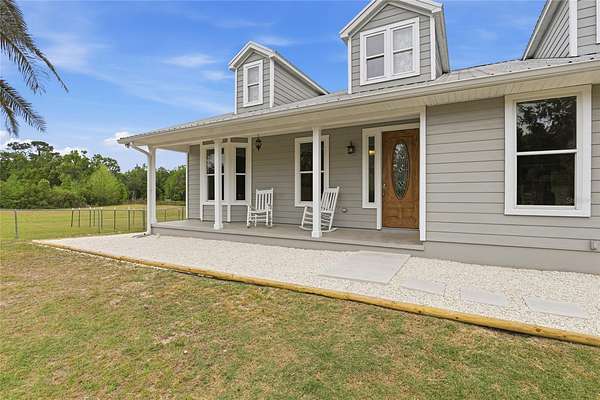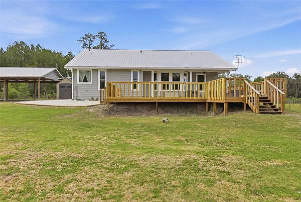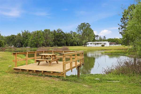 Welcome to a rare opportunity to own your own slice paradise, gracefully set on 5.7 picturesque acres with a fully stocked pond. This thoughtfully designed 3-bedroom, 2-bathroom residence offers more than 2,000 square feet of heated and cooled living space, and is sure to impress. From the moment you arrive, you’ll be drawn in by the home’s inviting presence - complete with a newly laid rock landscaping bed, a fenced front yard ideal for pets or little ones at play, a spacious 3-car covered carport with ample storage, and a cozy front porch just waiting for a pair of rocking chairs and a slow morning coffee. Step inside to discover a bright and airy split floor plan featuring soaring ceilings and no carpet throughout, offering both style and ease of maintenance. The heart of the home unfolds into an open-concept kitchen, living, and dining space - perfectly suited for gathering with family and friends. Just off to the right, a generously sized bonus room provides endless possibilities, whether you envision a second living area, fourth bedroom, home office, or a dedicated homeschool retreat. The primary suite is a peaceful sanctuary of its own, offering private access to the back deck, serene views of the backyard and pond, and an en-suite bath complete with a walk-in shower, jetted soaking tub, and a spacious walk-in closet. On the opposite side of the home, two oversized guest bedrooms and a beautifully updated guest bath with a walk-in tile shower provide comfort and privacy for family or visitors alike. A large mudroom with washer and dryer adds both convenience and practicality to everyday living. Out back, the true beauty of this property unfolds. An expansive wood deck overlooks the gently glistening pond, creating the perfect backdrop for quiet mornings, lively evenings, or simply soaking in the peaceful rhythm of country living. Grab your fishing pole and kayak, and enjoy reeling in bass out of the fully stocked pond. With its generous acreage, versatile layout, and inviting outdoor spaces, this property offers a rare opportunity to embrace a slower, more intentional way of life - without sacrificing proximity to town. Offered at $475,000, this is more than just a home - it’s a place to put down roots and make lasting memories. Schedule your private showing today and come experience the charm for yourself.