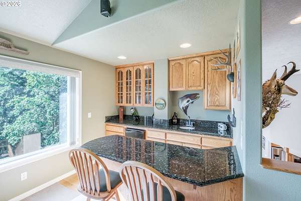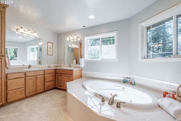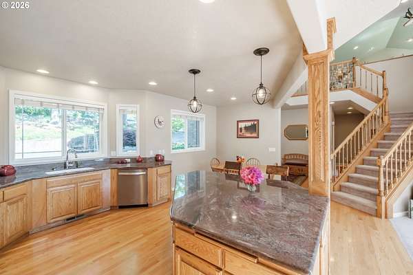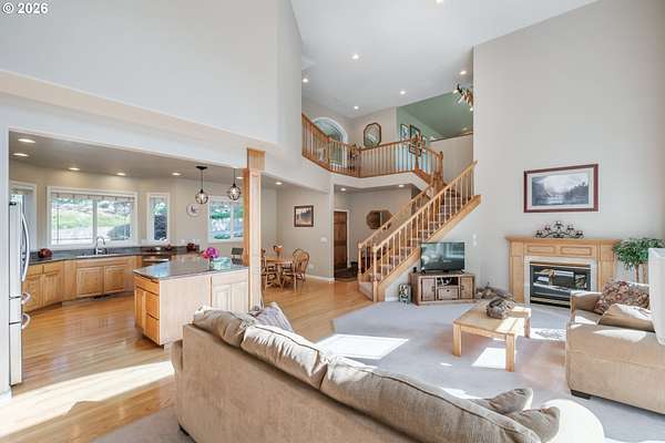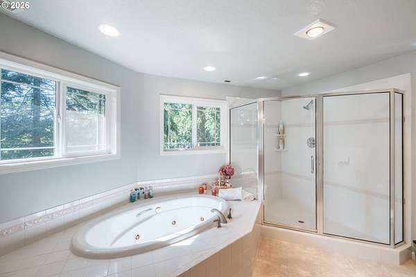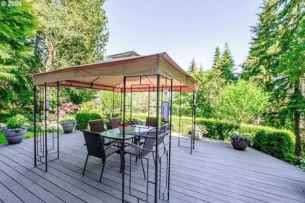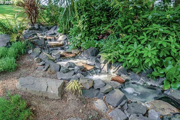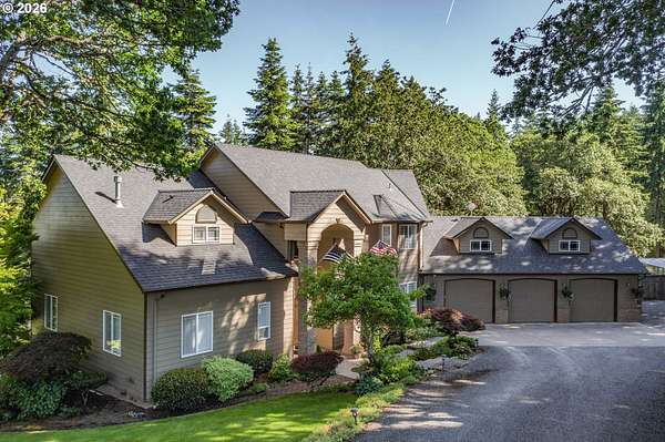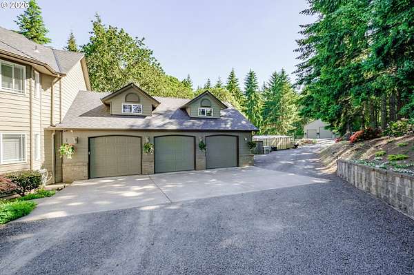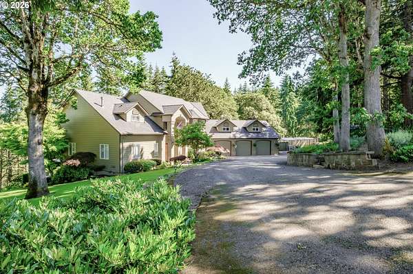 Est $5,707/moPRIVATE NW RETREAT! Enjoy filtered sunlight through towering timber, coffee in hand as you step onto your expansive Trex deck overlooking 5 private acres of lush landscaping, gardens, trails & peaceful forest. Custom 4 bd, 4 bath home in upscale neighborhood offers wood floors, granite counters, dramatic windows, 2 gas fireplaces. Retreat upstairs to family room & full wet-bar; and spacious, tranquil primary suite. 44x48 3-bay shop w/RV door, finished upstairs for lvg/rec/ofc. Waterfall, pond & irrigation.