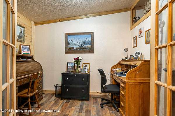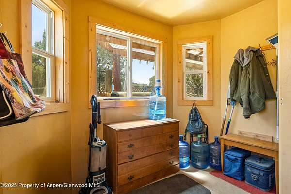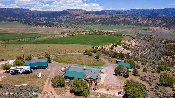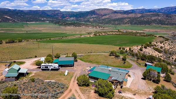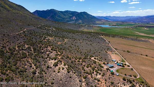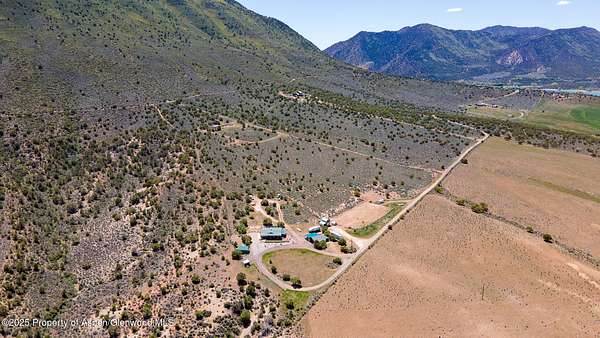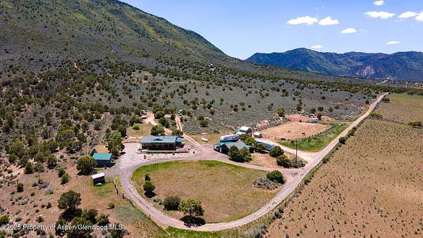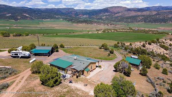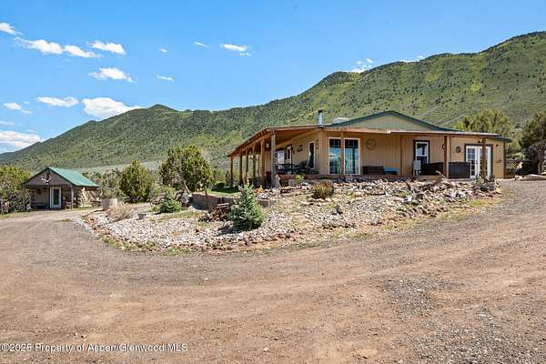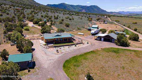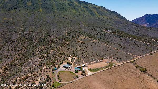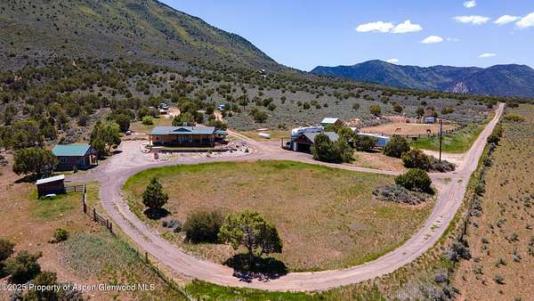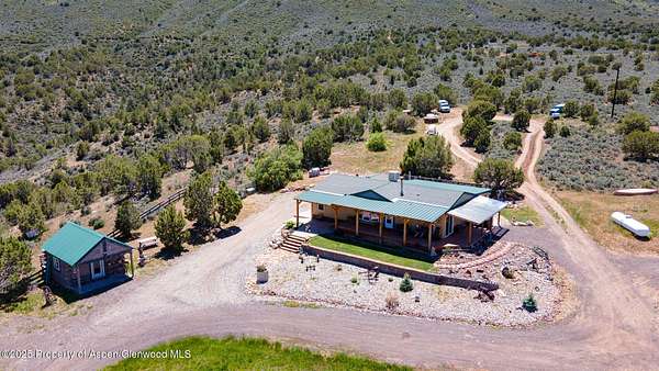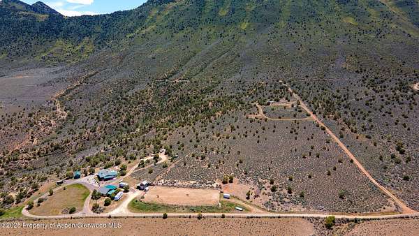 I-70 Exit 97 north into Silt. At the roundabout, take the 3rd exit onto Main St. Right on N 1st St, then left on County Rd 233. Turn right on County Rd 237, follow bends right, then sharp left to stay on 237. Continue to Harvey Gap driveway on right past BLM access. The dirt road goes uphill to a left turn, straight to right turn, downhill to left turn past a modular home, then climbs to Property