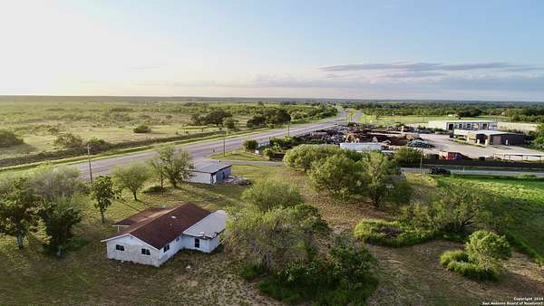 Prime commercial opportunity, this 3 acres located directly on Highway 281 in Pleasanton, Texas, offers exceptional visibility and easy access on a high-traffic corner location. This property is ideally positioned for businesses seeking strong exposure to daily commuter and regional traffic. The site includes a water meter already in place and features three existing structures, though they are considered to have no contributory value. The true value lies in the land, location, and traffic count, making it a blank slate for redevelopment. With frontage on a major highway and a corner layout that allows for convenient ingress and egress, this tract is well suited for a variety of commercial uses. Its visibility and accessibility make it an excellent candidate for a gas station, convenience store, quick-service restaurant, or other high-traffic retail development.