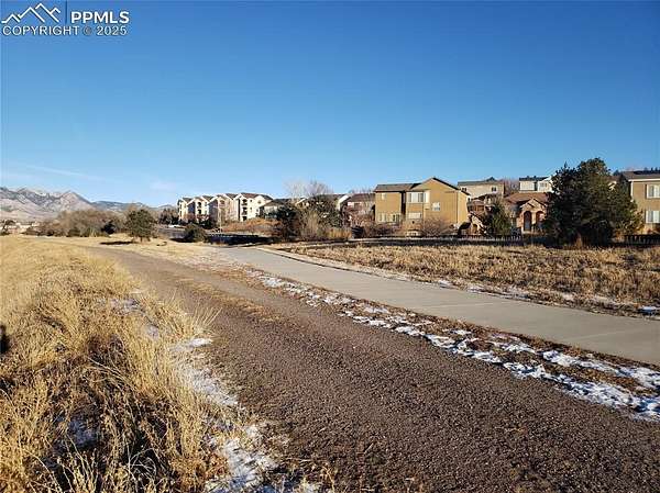 Welcome to picturesque living in the Scenic View neighborhood! This exceptional level, recently surveyed building lot offers an unparalleled opportunity to create your dream home in an idyllic setting. Nestled against the backdrop of the Templeton Gap trail and open space, this parcel of land provides a harmonious blend of natural beauty and convenience. The HOA dues include mowing and trash collection. Situated on a peaceful, dead-end street, this lot boasts the convenience of utilities already at the property line. The surrounding area is a haven for outdoor enthusiasts, with the Templeton Gap trail just steps away, inviting you to explore and connect with nature. Imagine stepping out your back door to embark on scenic hikes or strolls along this well-maintained trail. Beyond the tranquility of the immediate surroundings, this property offers proximity to both shopping and recreational amenities, ensuring that daily conveniences and leisure activities are easily within reach. Whether you're in the mood for retail therapy or seeking an adventure in the great outdoors, this location has you covered. One of this lot's most captivating features is its breathtaking panoramic views. Gaze upon the majestic Cheyenne Mountain and iconic Pikes Peak from your future home. The changing colors of the sky at sunrise and sunset will become a daily spectacle, creating a living masterpiece right outside your windows. Don't miss the opportunity to build the home of your dreams in a location that seamlessly blends natural beauty, convenience, and awe-inspiring views. This level building lot in the Scenic View neighborhood is a canvas awaiting your vision - where the promise of a tranquil and fulfilling lifestyle awaits.