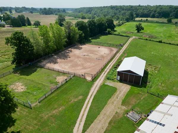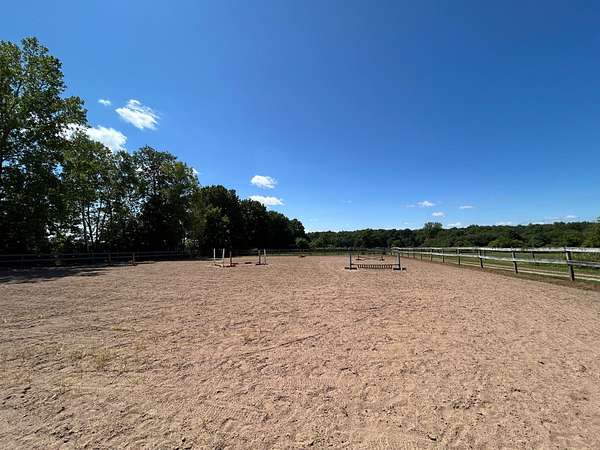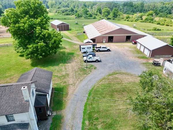Nestled in the country town of Pennellville sits this charming farmhouse and operating equestrian facility just waiting for someone to take the reins and make it their own! Featuring a large barn with two alleyways totaling 27 stalls, three tack rooms to ensure enough storage for yourself and potential clients, a heated viewing room, including a bathroom for one winter rolls around, a washbay with a rubber mats and a separate feed room. Outside of the barn setup, you will find five individual turnout options and three large turnouts with three run in sheds for equine comfort and 10 acres of hayfields for self sustainability. An aspiring trainer has everything they may need to reach success! The indoor riding arena sized 60 x 100 is perfect for any discipline. As if this facility wasn't already a dream. It includes a recently built hay barn of 32 x 60' with sliding doors 14 feet wide by 14 feet high to ensure any equipment may f120x180 outdoor arena with stellar footing and a three bay garage spanning 40 feet wide and 30 feet deep. If you weren't already in love, let the two-story old style home whisk into certainty! Boasting a country kitchen, three bedrooms and two full bathrooms, allowing ample space to enjoy your new cozy country lifestyle.
