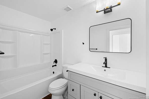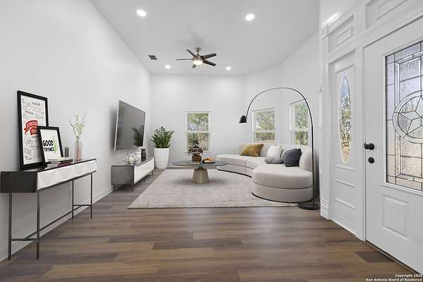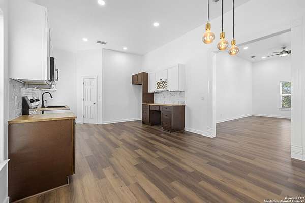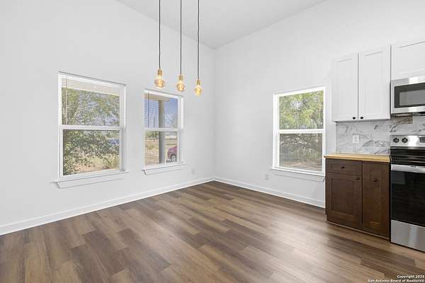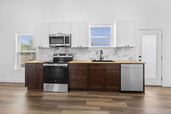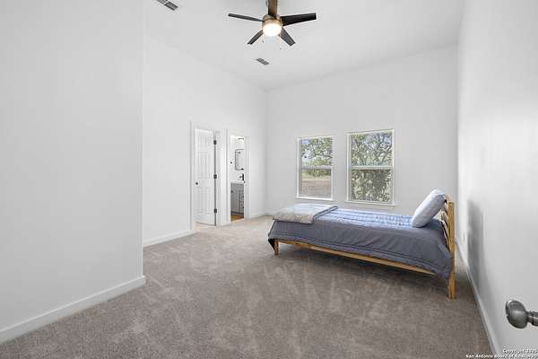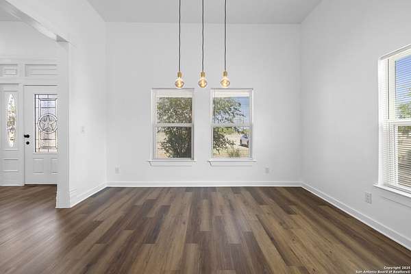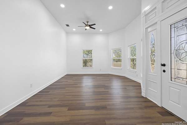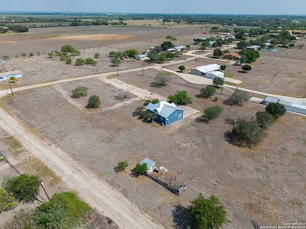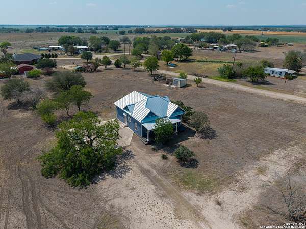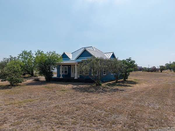 Nestled on a peaceful ~2.9-acre corner lot just minutes from Hondo, this beautifully updated 2-bedroom, 2-bath home offers a blend of modern comfort and serene country living. Boasting ~1,584 square feet of thoughtfully designed space, the home features soaring ~11-foot ceilings and an abundance of natural light, creating a bright and airy atmosphere throughout. The spacious living room, highlighted by a large bay window, is the ideal spot to relax and enjoy the surrounding views. With all primary living areas on the first floor, the upstairs bonus room offers options for a home office or den. The fully remodeled kitchen is a true standout, featuring custom cabinetry, butcher block countertops, new stainless appliances, and a built-in desk area complete with wine and cup racks. Both bathrooms have been beautifully updated, and the home includes new siding, vinyl windows, insulation, plumbing, electrical, and flooring. Luxury vinyl plank flooring flows through the main living areas, with carpet only in the bedrooms, stairs, and bonus room. The master suite is a private retreat with lovely country views. Additional highlights include an ~8'x31' covered front porch, ~1,588 sq ft concrete parking pad (a possible spot for a future garage or shop), and an eye-catching standing seam metal roof. The septic tank and drain field were replaced in 2025. This home combines timeless charm with the feel of a new build and is move-in-ready. Schedule your showing today!