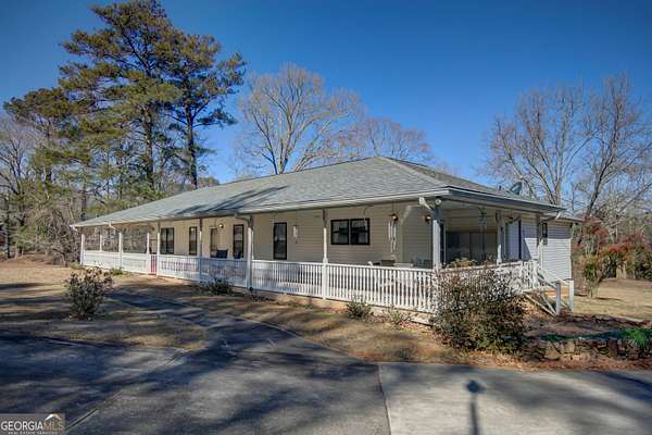 Amazing private estate located on Dogwood trail within 5 minutes of Highway 74 is situated on 6 beautiful acres. The house has approximately 3000 square ft. (please note Tax information is not correct). A wrap around porch extends the entire length of the house and around to the side entry. The foyer leads to a large great room and flows into a large kitchen with an abundance of cabinets. A large sunroom overlooks the picturesque rear yard which includes a private lake filled with bass and bream.. The 20X20 formal dining room can be utilized as a recreation room, media room or additional family living area. The oversized primary suite has a huge walk in closet, separate shower, tub, and 2 vanities. On the other side of the living area you will find two large bedrooms and a full bathroom with double vanities. The basement (exterior entrance) is currently a wood shop area. The exterior features a long winding driveway, gazebo, large garage/workshop, storage building, and carport. Minutes from Peachtree City, restaurants, shopping and Piedmont Hospital. Close to I-85 and a quick drive to the airport and Atlanta.