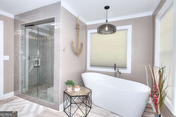 - Double Vanity, Entrance Foyer, High Ceilings, Master On Main Level, Separate Shower, Soaking Tub, Tile Bath, Walk-In Closet(s)
