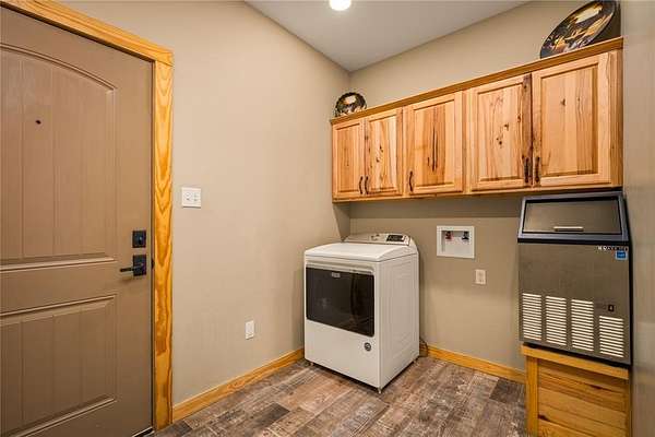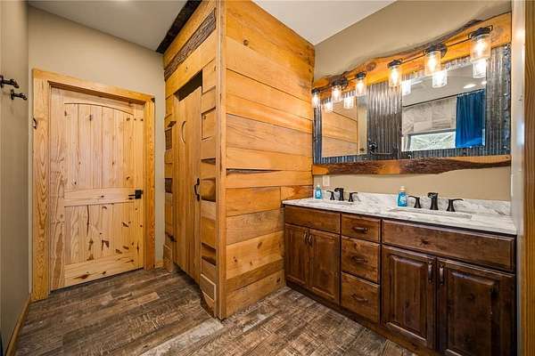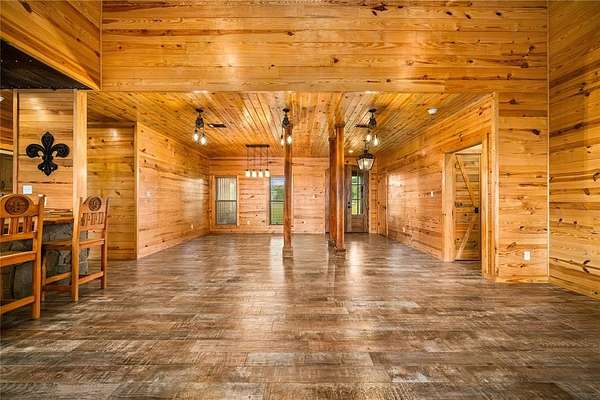 The river setup is already done right with a private dock, covered boathouse with two boat lifts, and jet ski floats. A full seawall has been added, and electricity is already run to the dock.