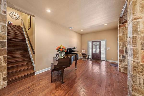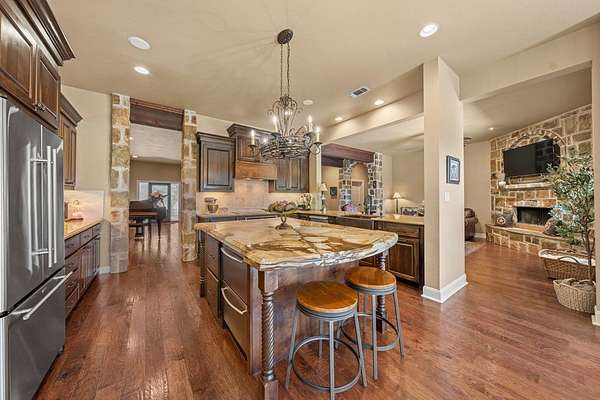 Welcome to the newly updated 377 Waterstone Parkway, a stunning Hill Country retreat nestled on 3.3 private acres within the highly sought-after gated community of Waterstone on the Guadalupe. This exceptional custom home has been thoughtfully refreshed and is move-in ready, offering over 4,700 square feet of beautifully appointed living space with five bedrooms, four and a half baths, and a breathtaking backyard oasis complete with a sparkling pool and spa, perfectly timed for the warm weather days ahead and designed for those who appreciate the finer things in life. Recent updates elevate the home's already impressive appeal, newly renovated bathrooms showcase elegant solid surface countertops and updated lighting, while the primary bathroom has been stunningly reimagined with beautiful new flooring and refined finishes that speak to the quality of every detail throughout this home. Updated interior lighting creates a warm, light-filled ambiance that highlights the custom craftsmanship and open, airy spaces. Step outside to your private resort-style sanctuary, where the sparkling pool and spa are framed by mature trees and the timeless natural beauty of the Texas Hill Country, the perfect backdrop for long summer evenings and effortless outdoor living.Beyond your doorstep, Waterstone on the Guadalupe delivers a lifestyle unlike any other. Residents enjoy private Guadalupe River access at two beautifully appointed parks, where tubing, kayaking, canoeing, fishing, swimming, and a rope swing await. The community also features pickleball courts, sand volleyball, a covered pavilion, playground, and picnic areas, all complemented by year-round neighborhood events including Fall Festivals with hayrides, Christmas caroling, a Spring Fling, and more. It's a place where neighbors become lifelong friends, deer roam freely, and kids thrive. With easy access to Boerne, San Antonio, and the Guadalupe River, this is refined Hill Country living at its finest, luxury, leisure, and community, all in one exceptional address.