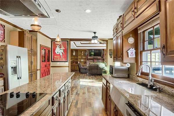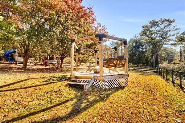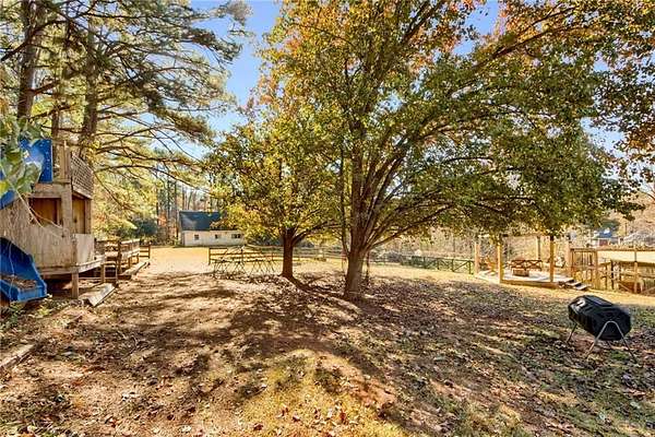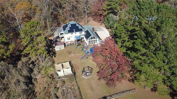 Discover the perfect blend of space, serenity, and agricultural living on 2.72 sprawling acres-an ideal setting for anyone dreaming of horses, chickens, gardening, or simply enjoying a peaceful lifestyle with room to spread out. This 5-bedroom, 3-bath home features a thoughtful and versatile layout, beginning with a main-level guest bedroom, a stain-grade office/study, and a spacious kitchen complemented by a large walk-in pantry. A professionally built sunroom filled with natural light opens to the main family room, creating a warm and inviting space for everyday living and relaxing with views of the land. Upstairs, the primary suite offers privacy and comfort, while the oversized secondary bedrooms provide exceptional space for family, guests, or hobbies. The fully finished basement level is designed for true multi-generational living, offering a full kitchen, large pantry, stackable washer and dryer, bedroom, full bath, and its own exterior entrance with patio-perfect for in-laws, adult children, or guests seeking independence. The home also includes solar panels, providing energy efficiency and impressively low electric bills, a valuable benefit for a property of this size. Outdoor living shines with an above-ground pool featuring a wraparound entertainment deck, a barn with up to four horse stalls and a single-door garage, a chicken coop, and a custom-built playground. There is ample open and usable land for animals, gardening, or future expansion. While the home offers incredible space, functionality, and unique amenities, it also presents the opportunity for personal updates to make it your own. Whether you're seeking a homestead, a multi-generational retreat, or a property with unmatched outdoor potential, this home delivers the perfect charm of country living just minutes from local conveniences. Conveniently located in Snellville between Stonecrest, with easy access to Highway 78 and I-20.