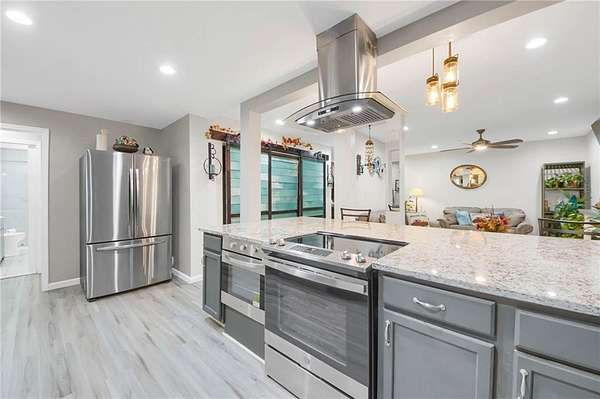 - Dishwasher, Double Oven, Electric Cooktop, Range Hood, Refrigerator