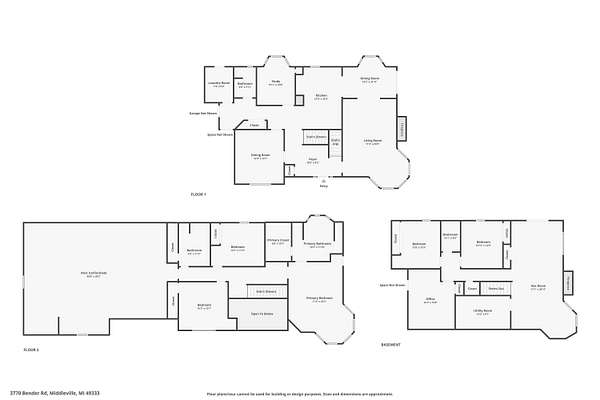- Basement, Bathroom x 4, Bedroom x 5, Dining Room, Game Room, Laundry Room