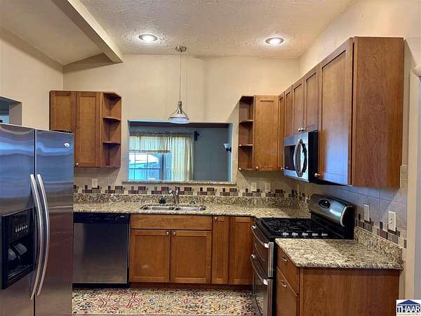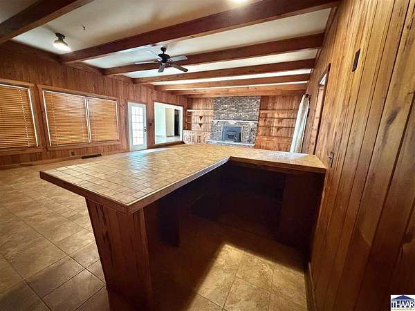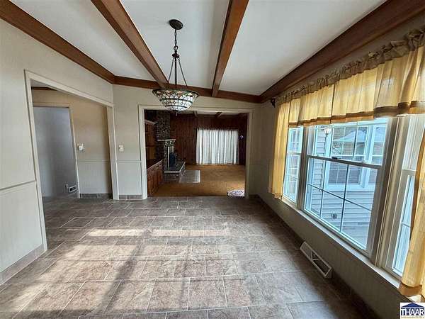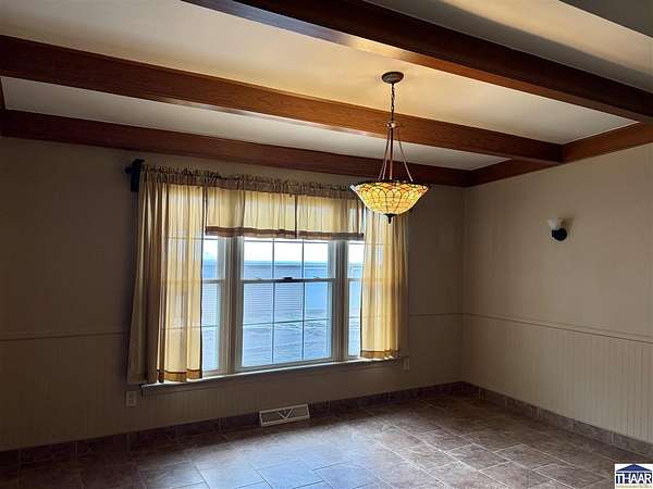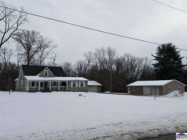 Set on a beautifully landscaped 10 acre property on the very popular east side of Terre Haute, this spacious 5-bedroom, 4-bath home offers both elegance and functionality throughout. The updated kitchen and baths complement formal dining and an eat-in kitchen, enhanced by chair rail accents and coffered ceilings. The inviting family room features a fireplace and bar area, ideal for entertaining. A well-appointed laundry room includes a folding table and rack system, while abundant closets provide exceptional storage. Major updates include a new well, septic system, tankless hot water heater, 200-amp electrical service with backup power switch, newer replacement windows, updated siding on both home and garage, a new garage roof, new back deck, and upgraded exterior lighting. Outdoor features include a rock garden and mature landscaping, creating a peaceful and attractive setting. Also plenty of space to enjoy all the activities you love. The detached garage offers exceptional space and a half bath for entertaining while still offering plenty of true garage space. Call your favorite agent today to tour this gem of a home.