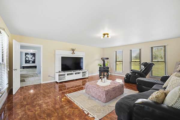 Though it feels like a country escape, this home is just minutes from shops and restaurants, ensuring you enjoy the best of both worlds. The outdoor amenities include a spacious two-bay metal garage that can house six vehicles. Plus, with no city taxes, this retreat is an unbeatable find.