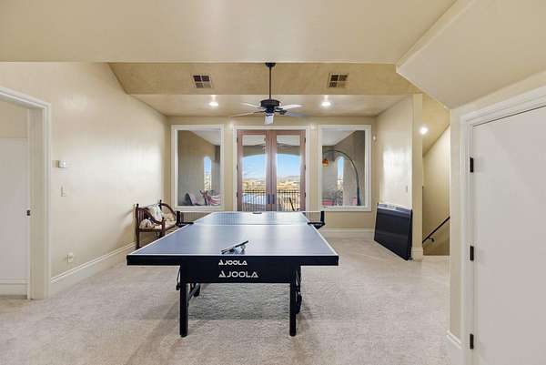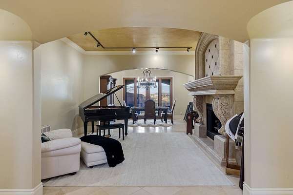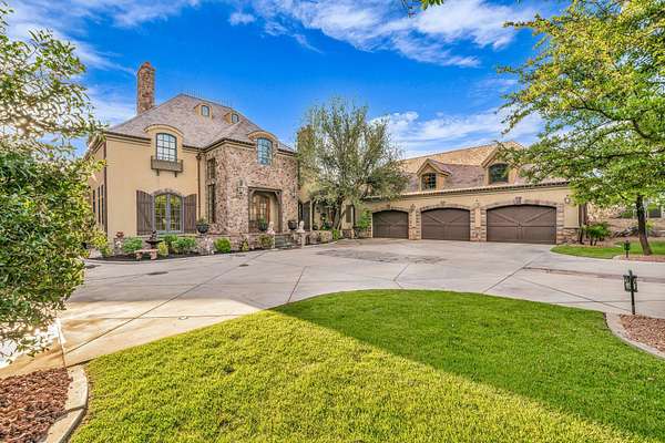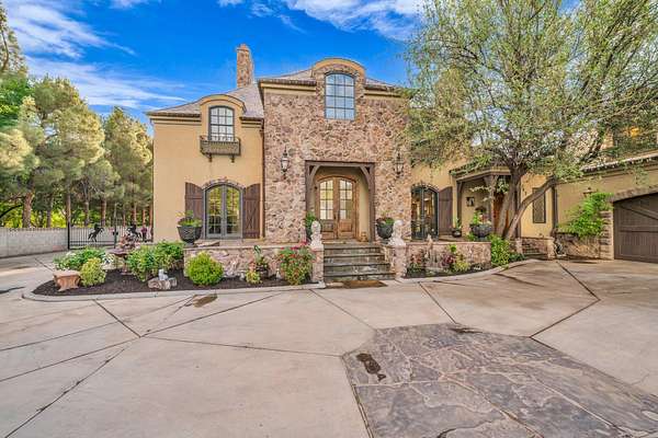 Seller Financing Available--Located in Bloomington Ranches, Southern Utah's most prestigious estate properties, this equestrian estate is truly unmatched. Set behind a private, secure gate on over 2 fully-fenced acres, it blends old-world European charm with modern luxury and exceptional privacy. The residence features imported stone fireplaces and flooring, stained glass accents, and expansive windows with views of the Virgin River and adjacent walking/bike path. Outdoor living shines with a sunset-facing patio and fully equipped outdoor kitchen. Built for a serious equestrian, the property includes a custom barn with 8 oversized European-style stalls, a professional riding arena, and 2 shares of irrigation water. Room for a pool, tennis or pickleball courts, or any outdoor adventure. An attached casita (ADU) offers ideal space for guests, multigenerational living, a ranch hand, or rental income. A rare opportunity in Southern Utah's premier equestrian enclave.