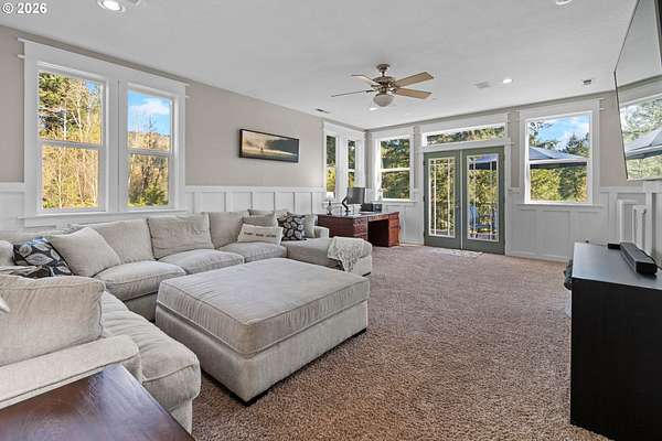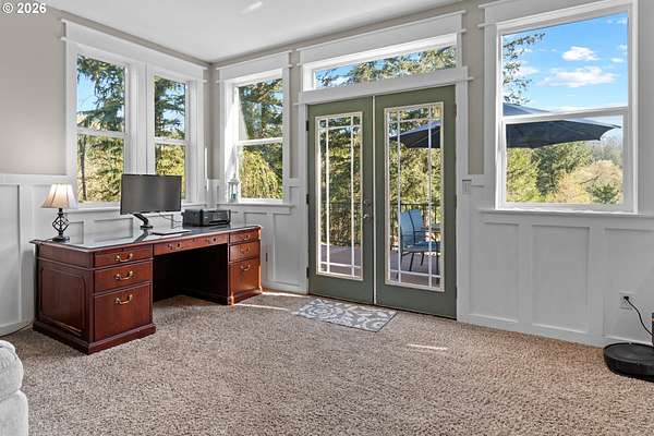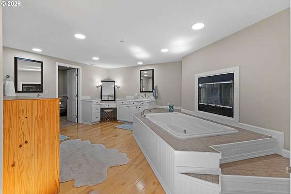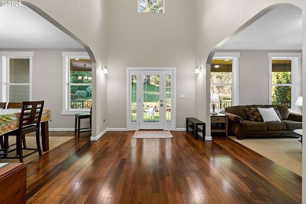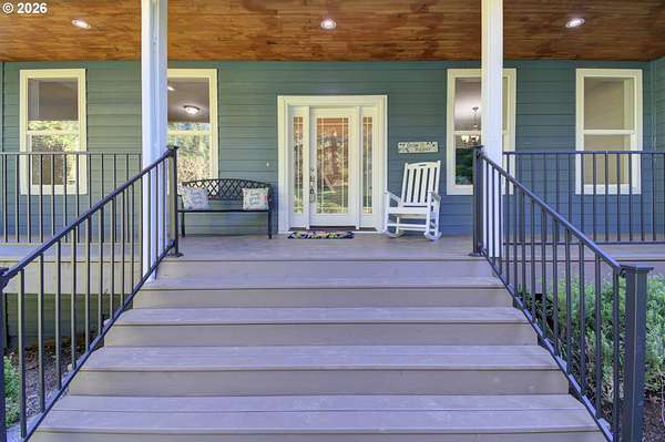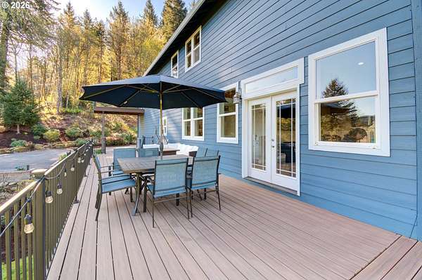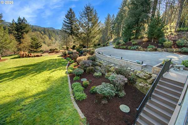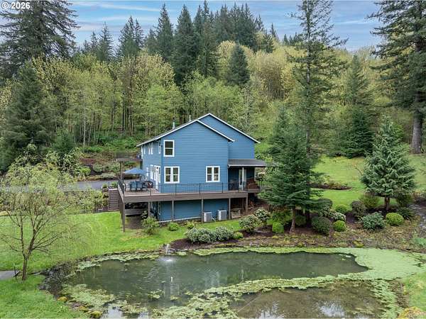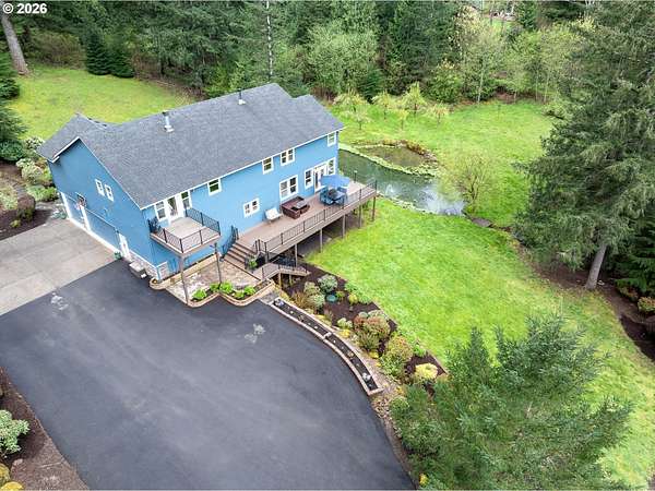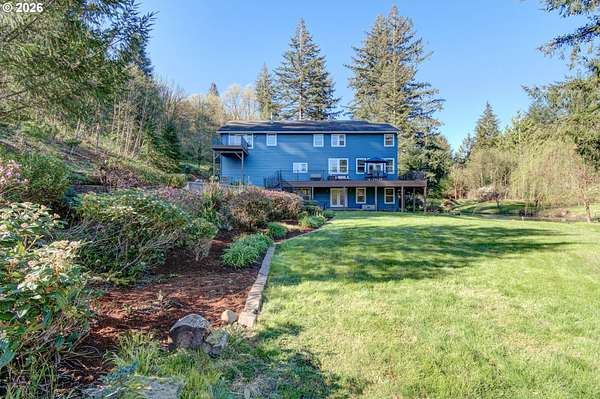 BIG BEAUTIFUL HOME ON ACREAGE. 5 bedrooms (potentially 6) + office, 3 1/2 bathrooms, 5230 sqft, built in 2002 on 7.52 acres. Two story entry & refinished bamboo floors bring you into the home w/ a formal living room & dining room. Kitchen has been completely updated w/ quartz counters, huge island, walk-in pantry & second butler pantry, stainless appliances and an eating nook that all opens to the great room w/ ceiling fan & deck access. 1200 sqft primary bedroom suite upstairs w/ living area, fireplace, a loaded primary bathroom that has walk-in closet, jetted tub & 7'x7' walk-in shower plus a private office that provides peace & quiet for those zoom calls. Bedrooms 2-4 and the laundry room are upstairs also. Downstairs has a large family room w/ additional storage room & sauna. Bedroom 5 (and potentially 6) are downstairs too. Fiber high speed internet. 3 car garage + 4th bay/workshop area. Covered wrap-around porch & large back deck (perfect for entertaining) overlooks the yard and the spring-fed pond & creek that meanders to the acreage below w/ fire pit, chicken coop, fruit trees, huge fenced garden area and even a zip line. There is one parcel of vacant land between this property and the Washougal River. This is one of the best rural locations you can get in Washougal - a completely private setting yet only 8 minutes to town, shopping, schools, etc.