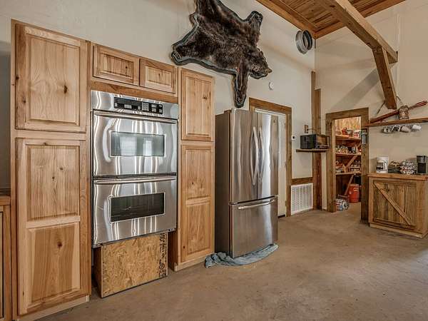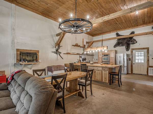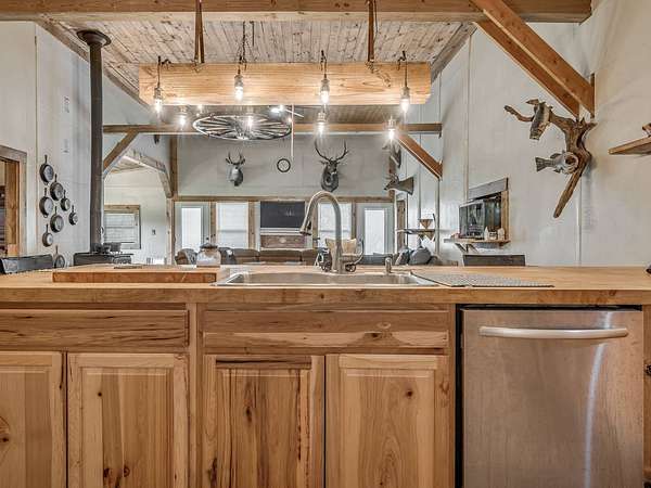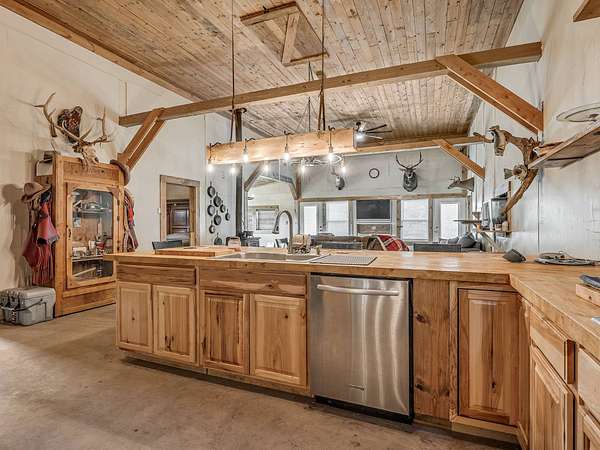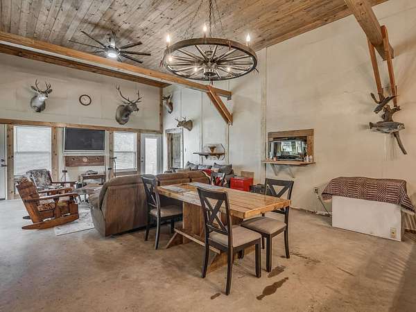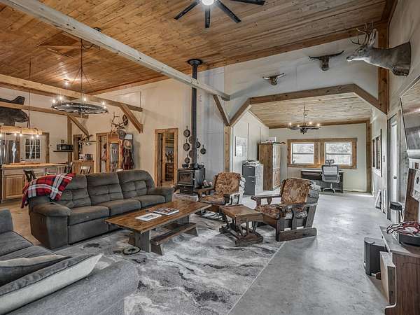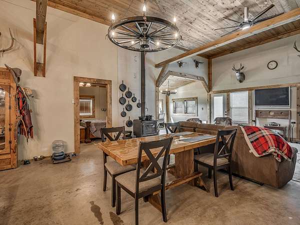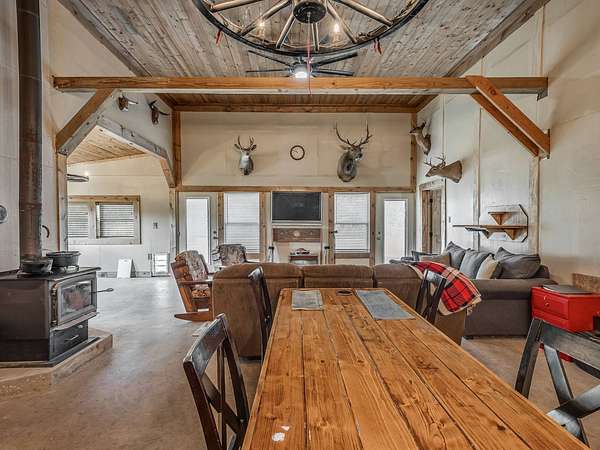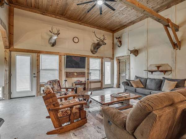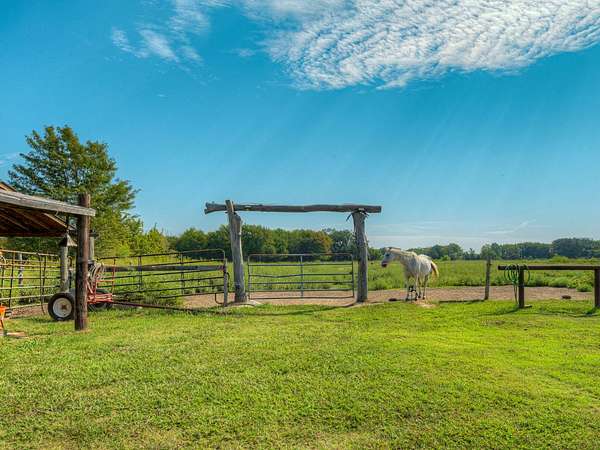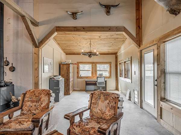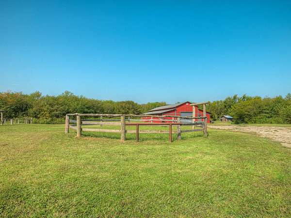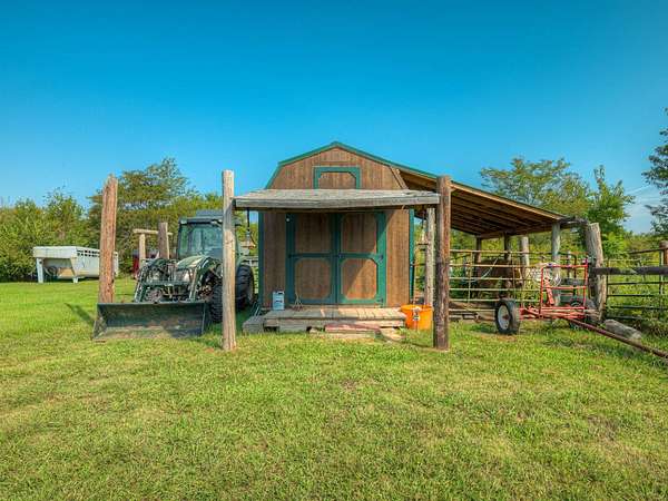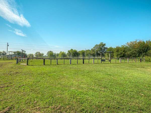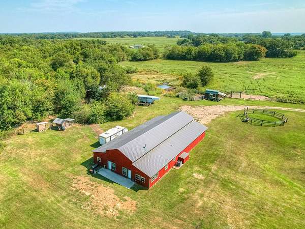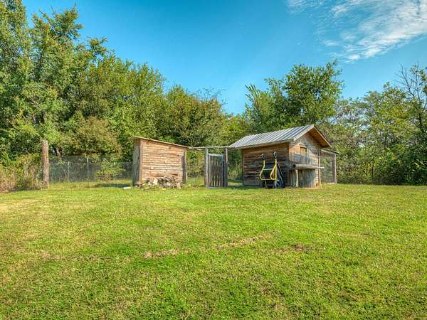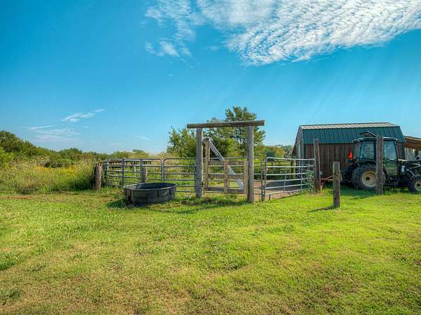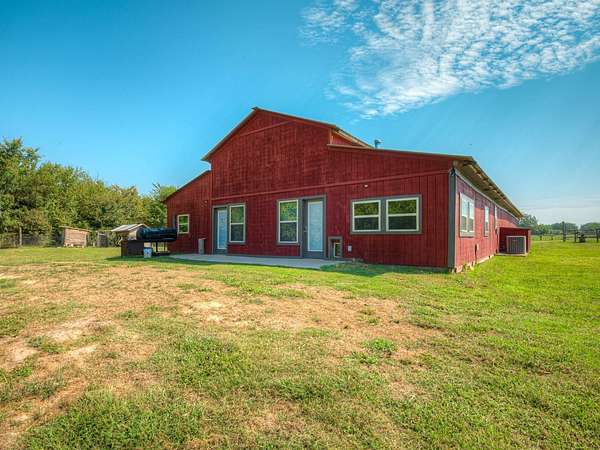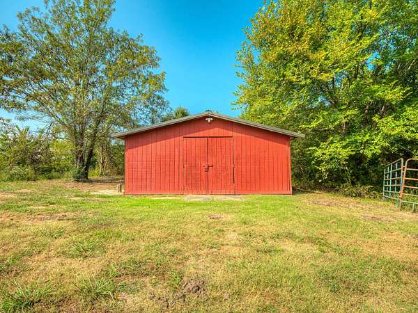 Sprawling 54.68-acre (MOL) homestead near Okemah Lake! Featuring a well-built and heavily-insulated Barndominium with 2 Beds, 2 Baths, and 1760 sqft of living space. The interior of the Barndo was recently finished, making it a must-see in person! These cozy quarters are complete with a Wood-Burning Fireplace, Tankless Hot Water Heater, and Propane Tank. All appliances convey with the property, including a Washer/Dryer and John Deere zero-turn mower. Designed with both comfort and functionality in mind, this ranch is ideal for equestrians and outdoorsmen alike. Horse lovers will appreciate the Corrals, Round Pen, Tack Room, and Pasture. Bird owners will be thrilled with the Predator-Proof Barn, which can easily be converted into a bunkhouse or stalls as needed. Red Buildings are climate-controlled and equipped with City Water and City Electricity, plus Propane Tank for gas. Multiple RV Hookups are present on the property. Stock Tank Heaters keep your farm animal's water from ever freezing. The acreage also features Frost-Free Water Hydrants throughout. The property consists of the West Field, the Residence, East Pasture, and a small sliver split off by the main road. Fully-Fenced with Post & Wire. There's also a Pond and Seasonal Creek. An additional homesite of 2 acres (mol) also available for a nominal amount on the east end of the property with Utilities to Site, Septic, and RV Hookup! You'll find plenty of Whitetail Deer and Wild Turkeys, along with a Permanent Deer Stand in the West Field making this a true Hunter's Paradise. Don't miss the opportunity to own this versatile slice of Oklahoma land!