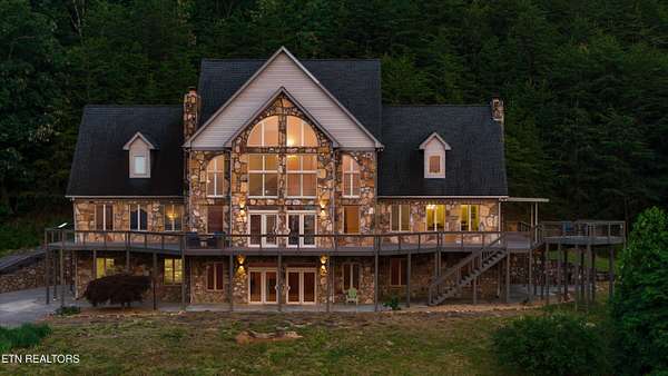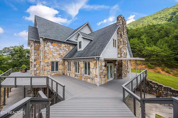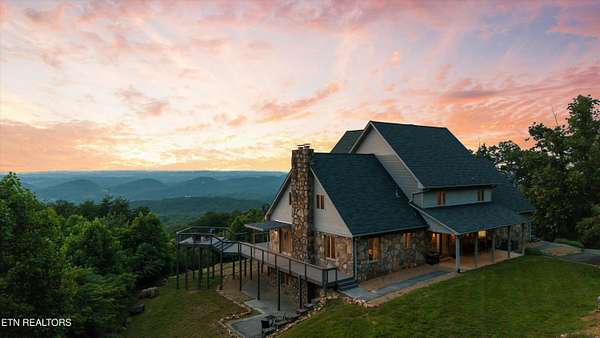 Have you ever dreamed of owning a private mountain estate? This custom-built home by Wilson Construction is a true piece of paradise, located in the highly sought-after foothills of the Smoky Mountains-with shopping and area restaurants just 9 miles away. Set on 30 private acres with panoramic views of the Cumberland Mountains and surrounding counties, this 4-bedroom, 3.5-bath estate offers 7,422 sq ft of refined living space and complete privacy. Two sides of the property border TWRA public hunting land, offering direct access to nature, seclusion, and adventure. Imagine sipping your morning coffee, sun set views while relaxing in the hot tub on the newly rebuilt and expanded Decorator Composite Deck-enjoy mountain views, Fourth of July fireworks, and air shows right from home. Inside, the main level features an oversized great room with a floor-to-ceiling stone gas fireplace, a formal dining room, breakfast room, updated bathrooms, and a huge master suite with a stunning remodeled ensuite. The kitchen was fully updated in 2024 with quartz countertops, a tile backsplash, and new appliances. (Two gas hookups are in place for a gas stove.) The upper level offers two bedrooms with a Jack and Jill bath and a spacious bonus room. The finished basement includes a cozy den with a wood-burning stone fireplace, a large game room, a workout room or gentleman's lounge, a fourth bedroom, and full bath. Additional upgrades include: * 2025-Newly resurfaced driveway * 2025-All interior doorknobs replaced * 2024-Two New propane water heaters * 2022-Perfect View 4.5'' wood plantation shutters throughout * 2021-New Amana air handler for top floor Conveniently located just 5.6 miles from the Bronco Off-Rodeo on Montvale Rd., 12 miles from the Foothills Mall, 14 miles to the iconic Tail of the Dragon (129), and only 17 miles from scenic Chilhowee Lake. The property is classified as TN Greenbelt Forestry Management area. This home offers unmatched tranquility, space, and craftsmanship-truly East Tennessee living at its best.