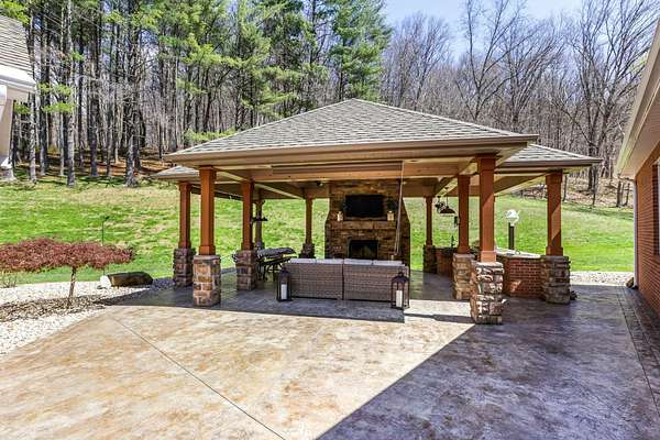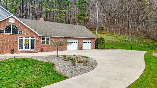 178.359 acres for sale in one of the most beautiful valleys in Ross County, Ohio. The current owners acquired this property, which was once a dairy farm, from their family in 1997. They spent years clearing the land, constructing a 1-acre pond, and building an equipment garage. They appreciated the location, privacy, and beauty of the property so much that they decided to build their new home in 2004. They contacted one of the top contractors in the area and worked side by side with them to construct the perfect family home. This all-brick home consists of over 5000 square feet of living area, and features 3 large bedrooms, 5 1/2 baths, a full finished basement, and a large bonus room above the garage. Custom features include hardwood floors, custom windows that provide great views from every room, custom cabinets, a custom staircase, natural stone floors in the garage and basement, 3 fireplaces, and a covered outdoor living area with an outdoor kitchen with appliances and a fireplace.