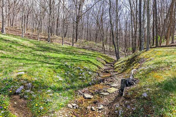The property consists of big woods, a hidden meadow, a one-acre stocked pond, and approximately a mile of frontage on Salt Lick Creek—plenty of trails for hiking or riding with family and friends. The 52x32 garage has plenty of room to store all of your toys, along with a 16x30 building to store your equipment.
