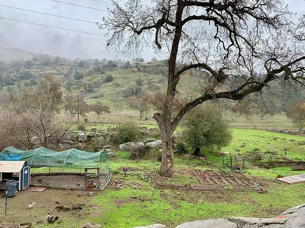 This 1368 square foot single family mountain view home has 3 bedrooms and 2.0 bathrooms. The garage was recently converted into 2 additional rooms and large pantry walkway directly off the dining area. The kitchen has been recently remodeled with all new cabinets and stove with butcherblock counter tops and a deep set industrial stainless-steel sink. This beautiful mountain property is an escape from city life with only a 40-minute drive to Fresno and Visalia. With 3.04 acres and 35+ fruit and nut trees, there is plenty of room for livestock, gardening, or quads/dirt bike trails. The back of the property has a seasonal creek, chicken coop, pig/sheep/goat enclosure, and gardening beds laid out. The front of the property has sun set views and a mini home with loft fully equipped with hot water plumbing, compost toilet, electricity, and an RV hook up. Next to the house itself it a shed previously used as a man shed or she shed.