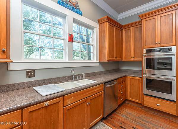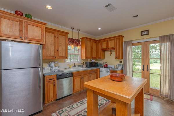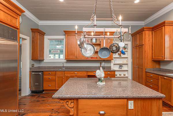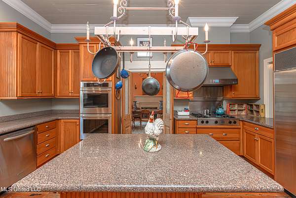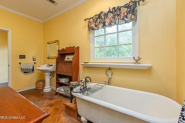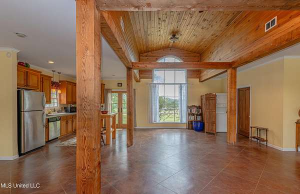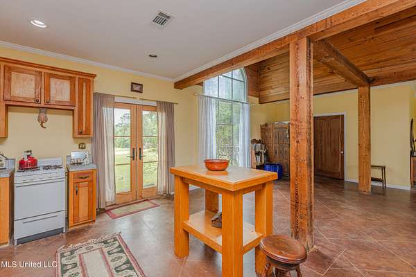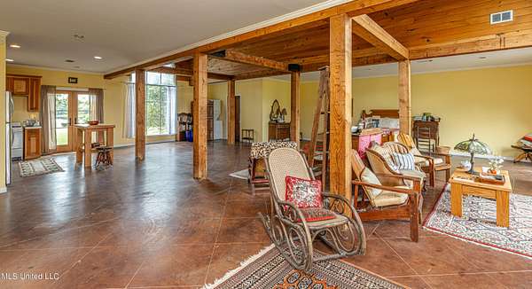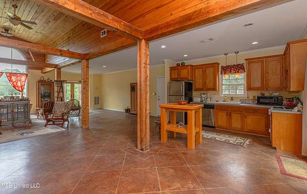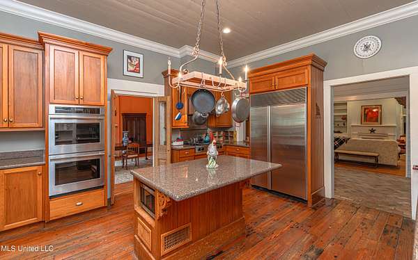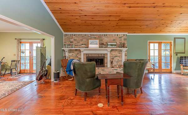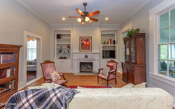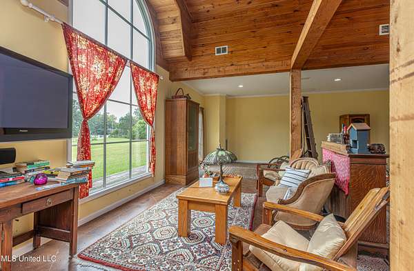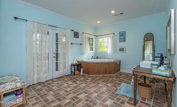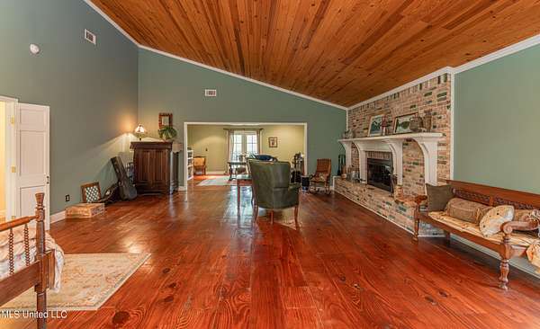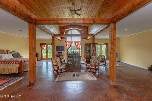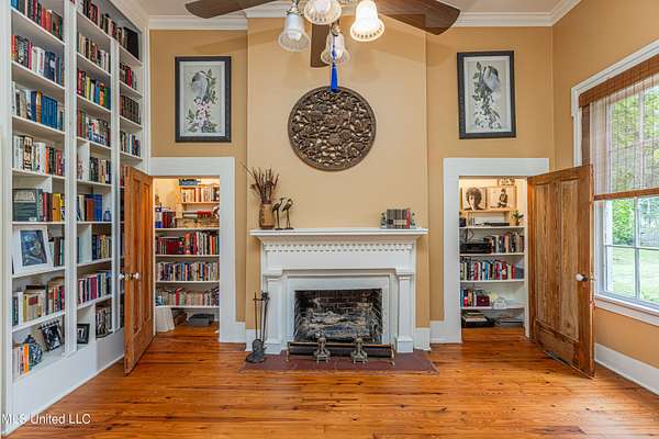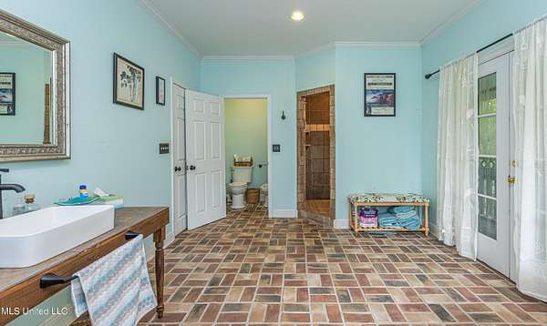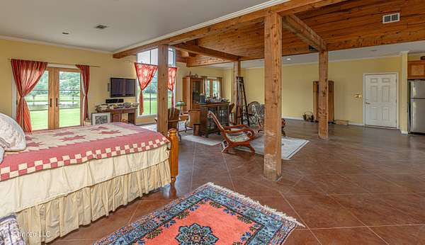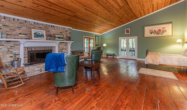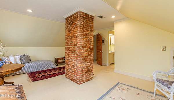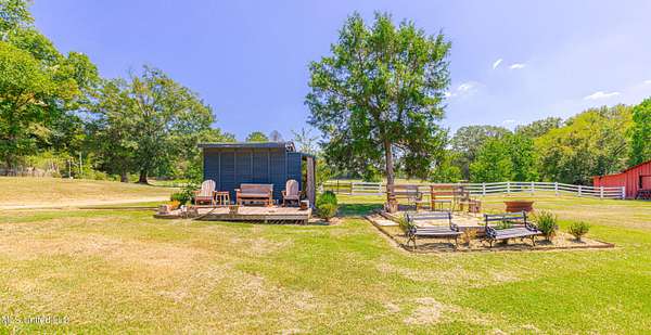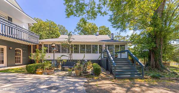 Welcome to Belleveeze circa 1840... a very unique & historically significant property in Madison County. Rich with history, updated additions providing modern comfort and plenty of land to call home. Tucked away on 7.31 acres is the original home, a Greek Revival Planter's Cottage. You'll feel the charm when you enter the driveway and view the hilltop home and the setting, which includes the original old 'Coca Cola barn and a guest cottage. An original brick pathway leads up to the generous front porch lined with boxwoods and beckons you to 'sit a spell'. Once inside the home, you will notice the perfect blend of old and new details. Numerous original fireplaces grace all the living areas, some with gas logs. Original Greek Key moldings surround the original doorways and windows and soaring 14' ceilings and dogtrot design give a nostalgic feel. The layout is traditional with the foyer flanked by the living room and the parlor with an adjoining reading room. These two rooms were previously used as the primary suite and bathroom. The reading room could be converted back to a bathroom if desired. A lovely formal dining room, a cozy den, a brick floored breakfast area, powder room and chef's kitchen are included in the original portion of house. The large, updated kitchen has granite countertops, custom cypress cabinetry, top of the line stainless steel appliances including double ovens and a cooktop with a griddle and a large island. There is a delightful pass-through window facing the den perfect for serving appetizers & drinks. Upstairs you will find two bedrooms with a jack and jill bathroom. A unique feature in each room is the original exposed brick chimney in the center. The huge enclosed back porch of the home is where the old meets the new. A small flight of stairs leads to a media room/den with lots of built-ins. Additionally this level includes a 2 car garage, bedroom, laundry room and bathroom. In keeping with the period of the original home, a clawfoot tub, pedestal sink and black and white subway tile shower were used in the bath. A separate flight of stairs takes you to the primary floor with a huge, vaulted ceiling in the bedroom with study/music room. Beautiful flooring, wood ceiling, oversized mantel over fireplace. Step through French doors to the wrap around porch, with sweeping views, which is screened on two sides. The bathroom and closet on this floor are equally impressive and include their own laundry room. Just outside the addition, a pathway leads to the inground saltwater pool area which is heavily landscaped for maximum privacy. There are several additional relaxing outdoor spaces including a gazebo and fire pit. Other wonderful outdoor features are the original brick-lined cistern, wisteria arbor, rose garden and a muscadine trellis. The old original barn is sturdily built and can house animals or equipment. Wrapping up this stellar property is a guest cottage in the far corner across the pond. It has an open floor plan complete with a kitchen with farmhouse sink, sitting area, bedroom space, deck overlooking pond, scored concrete floors and cypress beams. The bath has a clawfoot tub and corrugated tin for a farm feel. It has a separate driveway and parking and could be used as a rental unit. The entire property is not subject to covenants or restrictions. This property has SO MUCH to offer. There is nothing like this property in Madison County. It is truly one of a kind.