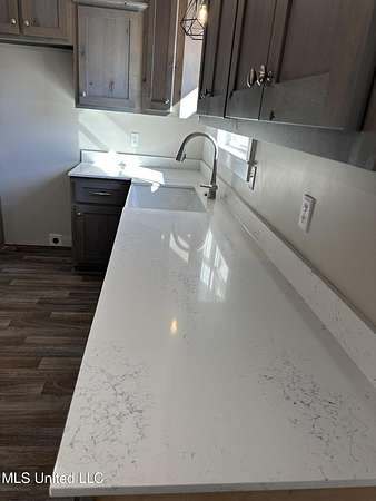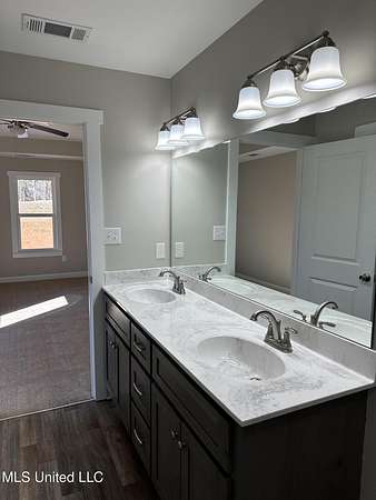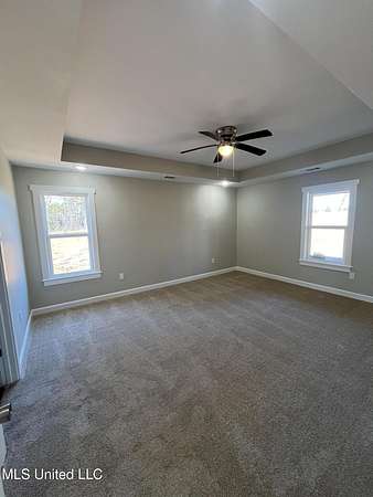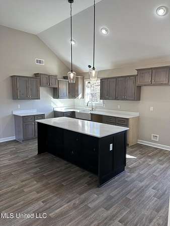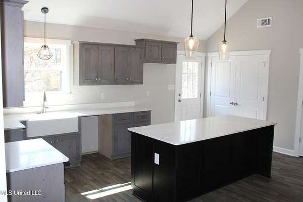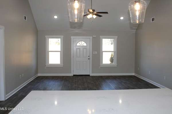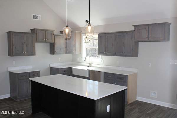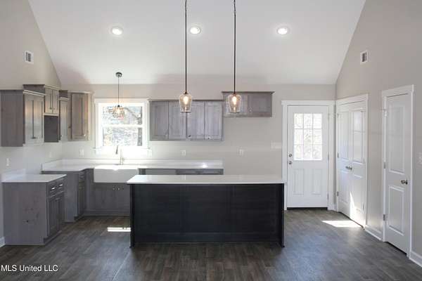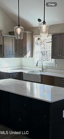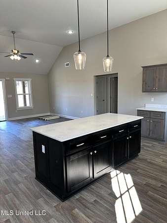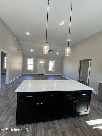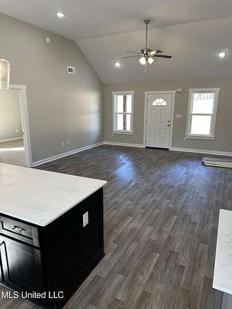 Est $1,290/mo1,397 sf 3 bedroom, 2 bath home sitting on 1.64 acres just south of Red Banks in Marshall County, MS. Split floor plan with kitchen, great room combo that features vaulted ceilings, center kitchen island and canned lighting. Large primary bedroom with trayed ceilings, his and her sinks and double walk in closets. Kitchen with farm sink and quartz counter tops and 7 foot island. Covered front porch.