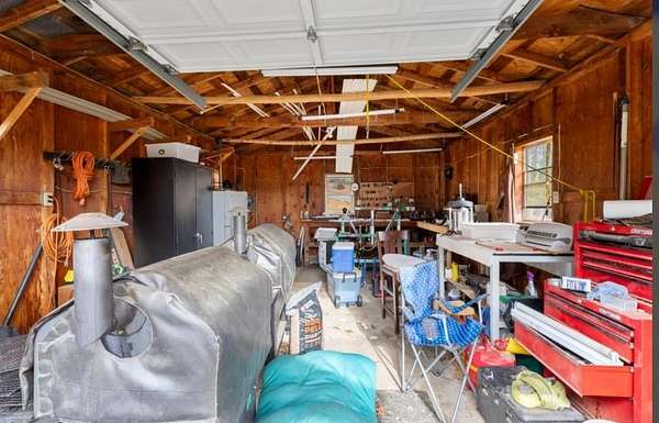 - Garden Space, Gravel Driveway, Storage Shed