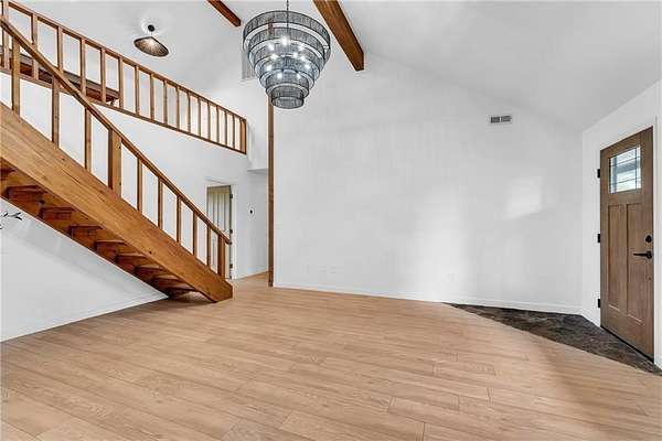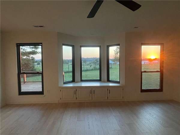This fully updated home in northeast Fayetteville offers the perfect balance of privacy and accessibility. Just over 3 minutes from I-49 and 15 minutes away from downtown Fayetteville, you'll enjoy all the perks of town while living on your own 1.34-acre lot with ag/sf-1 zoning. Thoughtfully renovated from top to bottom, this property boasts fresh interior and exterior paint, brand-new flooring throughout, a fully remodeled kitchen, and eye-catching new light fixtures that enhance every room. The spacious primary suite offers a luxurious escape with a custom marble shower and an upgraded dressing area featuring expanded storage. A newly added media room provides the perfect space for movie nights, gaming, or entertaining guests. Soaring vaulted ceilings and large windows fill the home with natural light, creating an airy, open atmosphere. Step outside to take in breathtaking panoramic views from the expansive wood deck, or relax on the custom wood swing. The property is agent owned. Schedule your showing today!