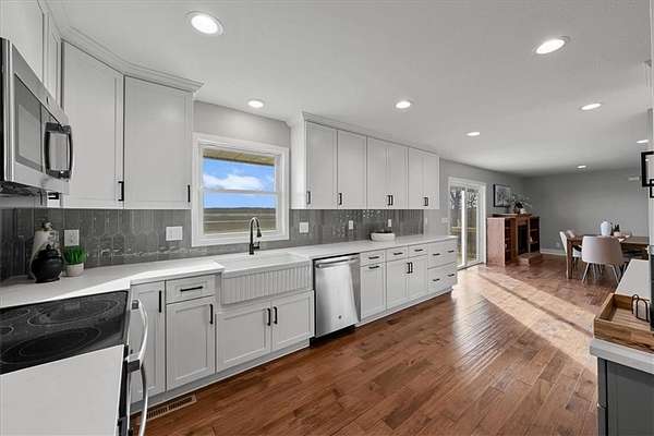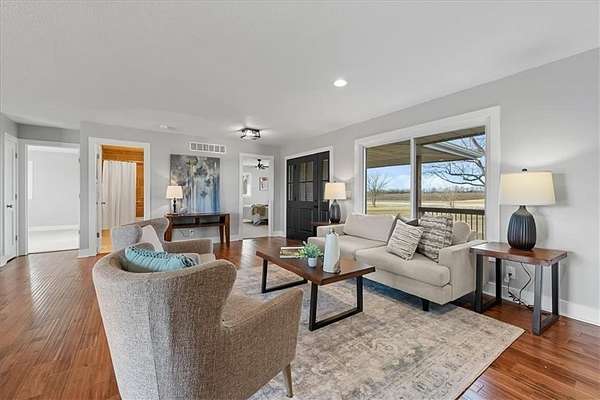 Price Improvement! Here's your opportunity to own 10 acres with the option to buy an aditional 7.5 acres & a fully renovated ranch house! 3,017 sq ft ranch home on 10 acres with 4 beds, 3.5 baths, finished walkout basement, and flexible main-level office/4th bedroom. Modern updates blend with classic ranch design-perfect for buyers seeking space, privacy, and country living with style. At the heart of the home is an all-new kitchen featuring abundant cabinetry, quartz countertop surfaces, and brand-new appliances-designed for both everyday living and entertaining. New bathrooms, all new windows, doors, flooring, HVAC System, Electrical Box and wiring, Siding, Exterior and Interior paint and all-new fixtures throughout reflect the home's comprehensive renovation and elevated finish. Everyday functionality shines with an expansive mudroom and main-level laundry, along with a walk-in pantry complete with a convenient grocery door to the garage. The finished walkout basement extends the home's versatility, offering a wet bar, professional epoxy flooring, and a striking glass-and-tile walk-in shower-ideal for hosting, relaxation, or extended living. The 2.5-car side-entry garage has new epoxy floors, providing durability with a polished look. Outdoor living is enhanced by a large new deck and expansive concrete patio overlooking the peaceful, open acreage. Additional amenities include a 40x60 outbuilding with electricity and a convenient lean-to, perfect for equipment, animals or additional storage. Paved road access-no gravel. The buyer receives first right to purchase the adjoining 7.5 acres, offering potential for added privacy or future expansion. NO HOA. No fencing. Just space, freedom, and the opportunity to make it your own.