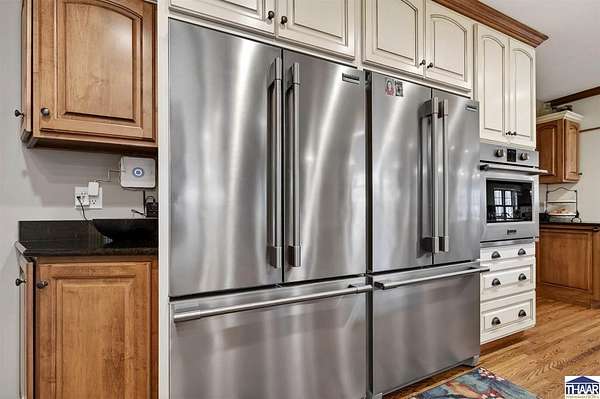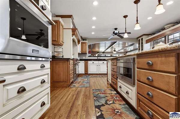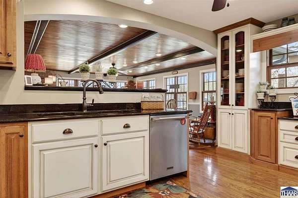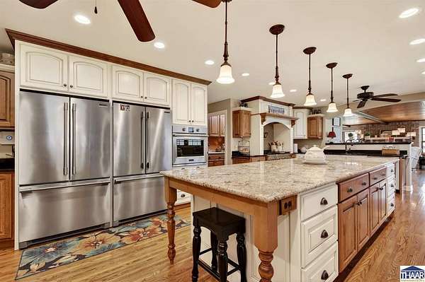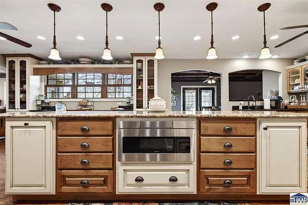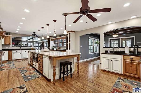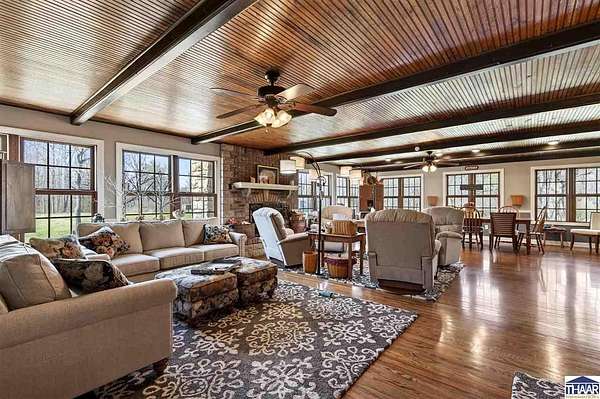 Introducing a meticulously updated ranch home nestled on 35 acres, this property boasts exceptional curb appeal that captivates all who encounter it. The homesite itself is a work of art, designed to harmonize with the surrounding natural environment. It features luxury finishes that cater to an upscale lifestyle. From the roof to the exterior siding, deck boards, landscaping, windows, doors, garage doors, & shutters, every detail has been thoughtfully curated. Inside, you'll find exquisite Amish cabinetry, solid hardwood flooring, luxury finishes, and spacious room sizes that ensure a remarkable living experience. This stunning residence includes five bedrooms & four bathrooms, showcasing intricate detailing and a dual-sized office. The expansive primary ensuite features his-and-her closets, offering ample storage. The kitchen is a chef’s dream, equipped with a planning station, dual refrigerator/freezers, a drawer microwave, and a beautiful open gas range, complemented by a beverage corner for effortless entertaining. Both formal dining areas—indoor and outdoor—provide additional spaces for gatherings, while various nooks invite cozy relaxation. You may find your favorite retreat on the generously sized screened-in porch, perfect for truly unwinding. The home includes four fireplaces and an abundance of windows that flood the interior with natural light. The walk-out basement presents extensive potential, featuring a secondary kitchen, living room, family room, bedrooms, offices,& a workout room, along with generous square footage for planned storage. This area could easily serve as a “mother-in-law” suite, offering an entire residence on the lower level in addition to the well-appointed upper ranch. The bonus is acreage in the rear of the property featuring a wonderful recreation oasis. There is a watering hole & garden area on site. Stay equipped as you store all your exterior toys in the barn, Explore the woods, & find your happy! Contact Broker for more info!