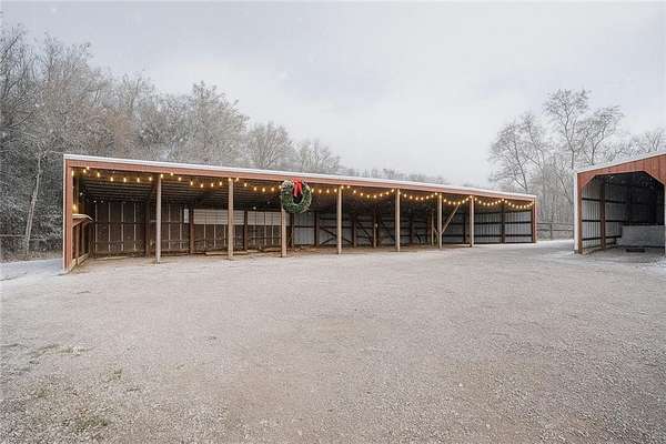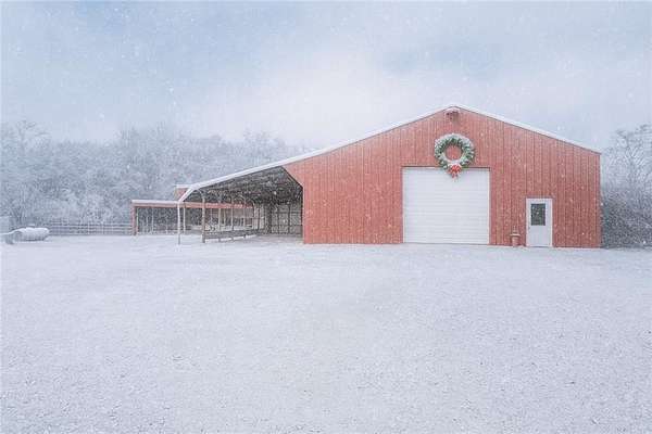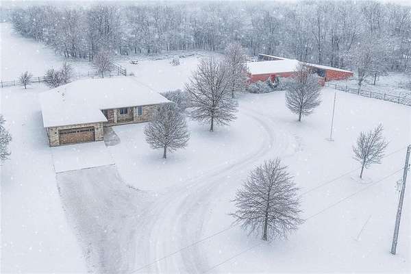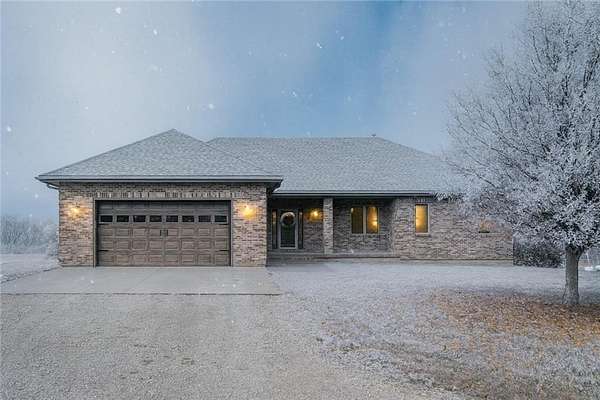 A rare opportunity! Set on approximately 24 acres, this property blends solid construction, peaceful scenery, and exceptional functionality for hunting, livestock, horses, recreation, and equipment storage. The home is built with a full brick exterior and true 2x6 construction-a rare level of quality in today's market. Brick homes offer unmatched durability, low maintenance, increased insulation, quieter interiors, and long-term energy efficiency. Inside, you'll find over 2,500 sq ft, freshly painted interiors, and a layout designed for comfort and entertaining. The main level offers an open entertainers dream, 3 bedrooms and 2 bathrooms, with bright living spaces. The walkout lower level is a major asset for buyers needing flexible space. It includes a large family room, bar/entertaining area, and a dedicated office, full bathroom making it ideal for working from home, hosting gatherings, or converting part of the space into a future 4th bedroom or guest suite if desired. The rest of the lower level includes a 2-car garage, creating a total of 4 garage spaces - perfect for vehicles, equipment, hobby storage, or workshop needs. Not only the home but outside, the land is what truly sets this property apart. Approximately 24 acres of mixed terrain include heavily wooded sections, two pastures, and a beautiful creek, making it a prime setting for deer and turkey hunting, cattle or horse operations, ATV riding, shooting sports, gardening, or recreational use. Whether you're looking for a homestead, hobby farm, or private retreat, this acreage checks every box. The impressive 60x40 heated shop offers concrete floors, large overhead doors, and room for tractors, equipment, RVs, trailers, tools, or professional workspace. Two additional lean-tos provide even more covered storage for implements, livestock supplies, or outdoor toys. Easy access to Wellsville, Ottawa, and major highways leading into the KC metro, this home offers both privacy and convenience.